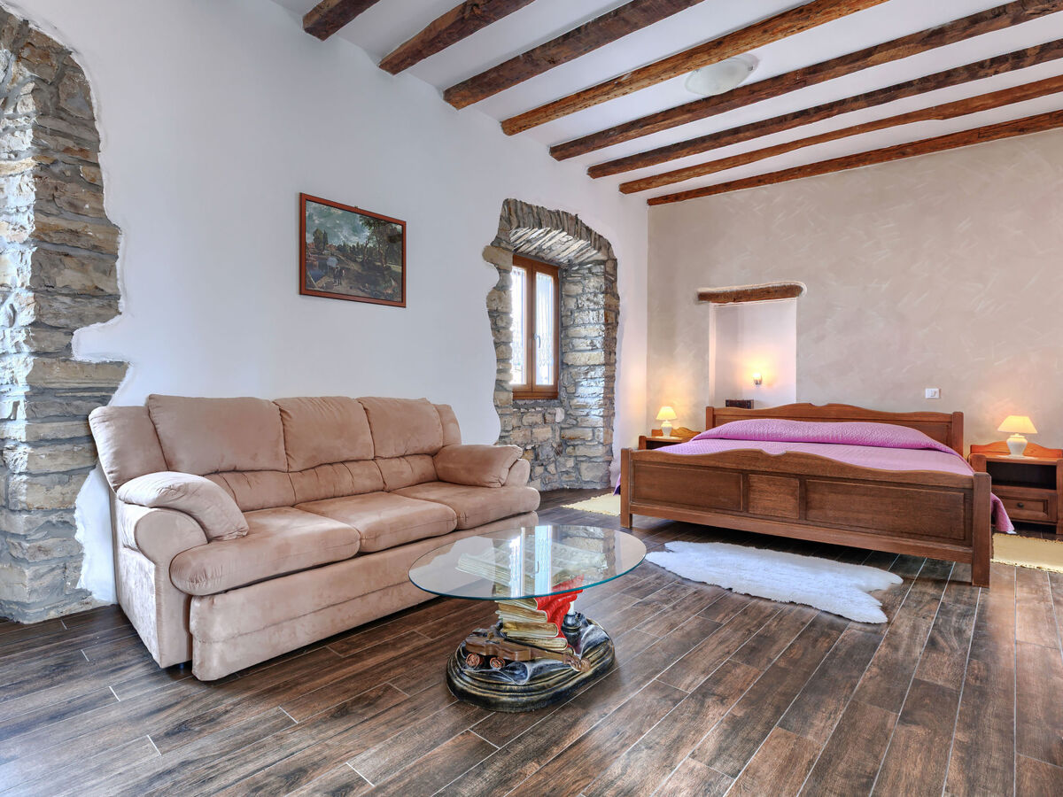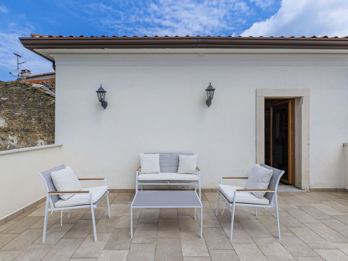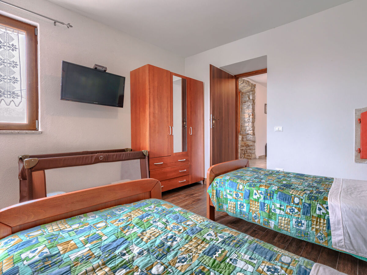 À 200 m du centre d'Oprtalj, à 10 km du centre de Motovun, situation ensoleillée, surélevée sur un versant, à 25 km de la mer, dans une impasse.