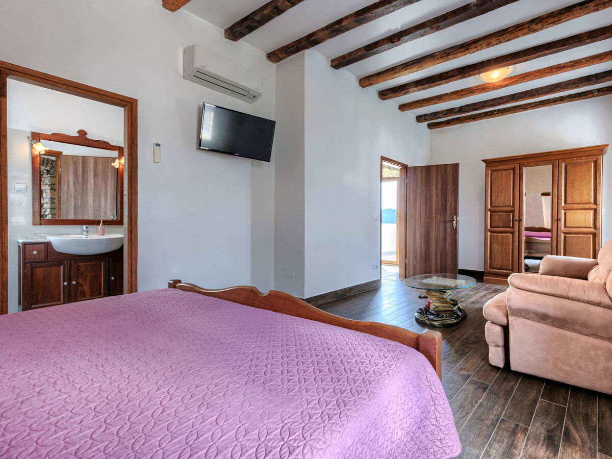 1 chambre avec 1 divan-lit double (140 cm, longueur 190 cm), 1 grand-lit (180 cm, longueur 200 cm), douche/WC, TV (satellite) et air-conditionné.