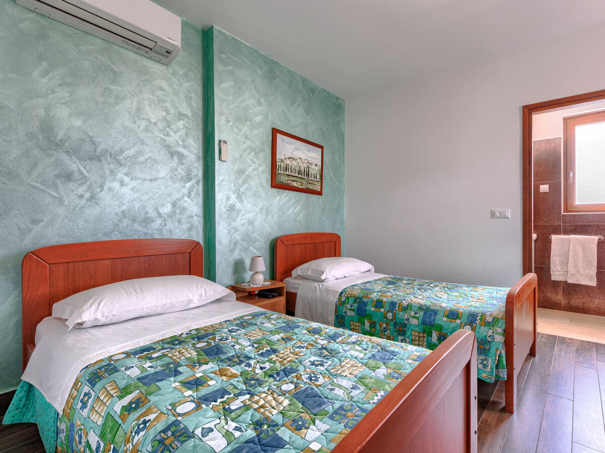 1 chambre avec 2 lits (80 cm, longueur 190 cm), douche/WC, TV (satellite) et air-conditionné.