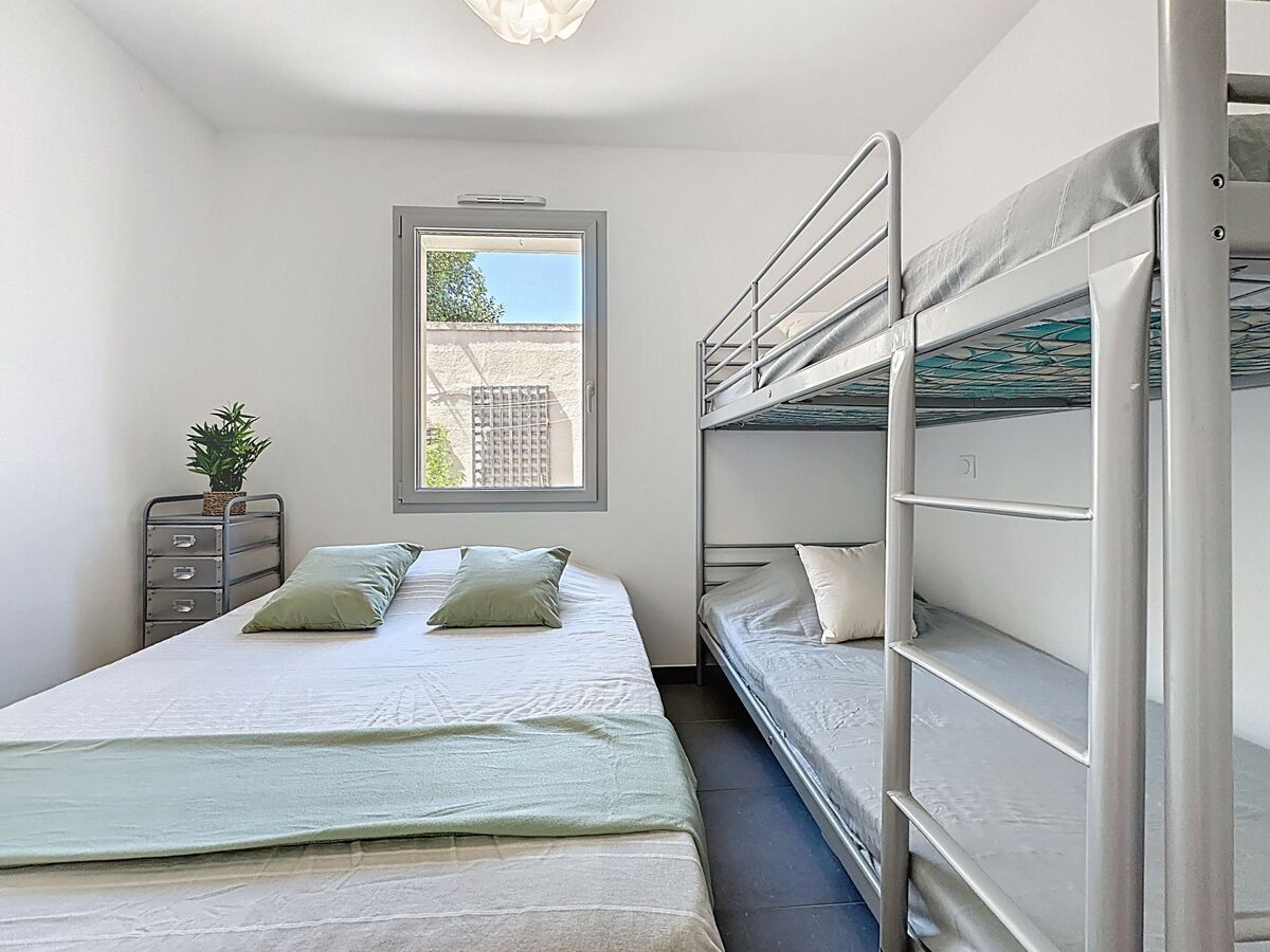 1 chambre avec 1 x 2 lits superposés (90 cm, longueur 190 cm), 1 grand-lit (1 x 140 cm, longueur 190 cm).