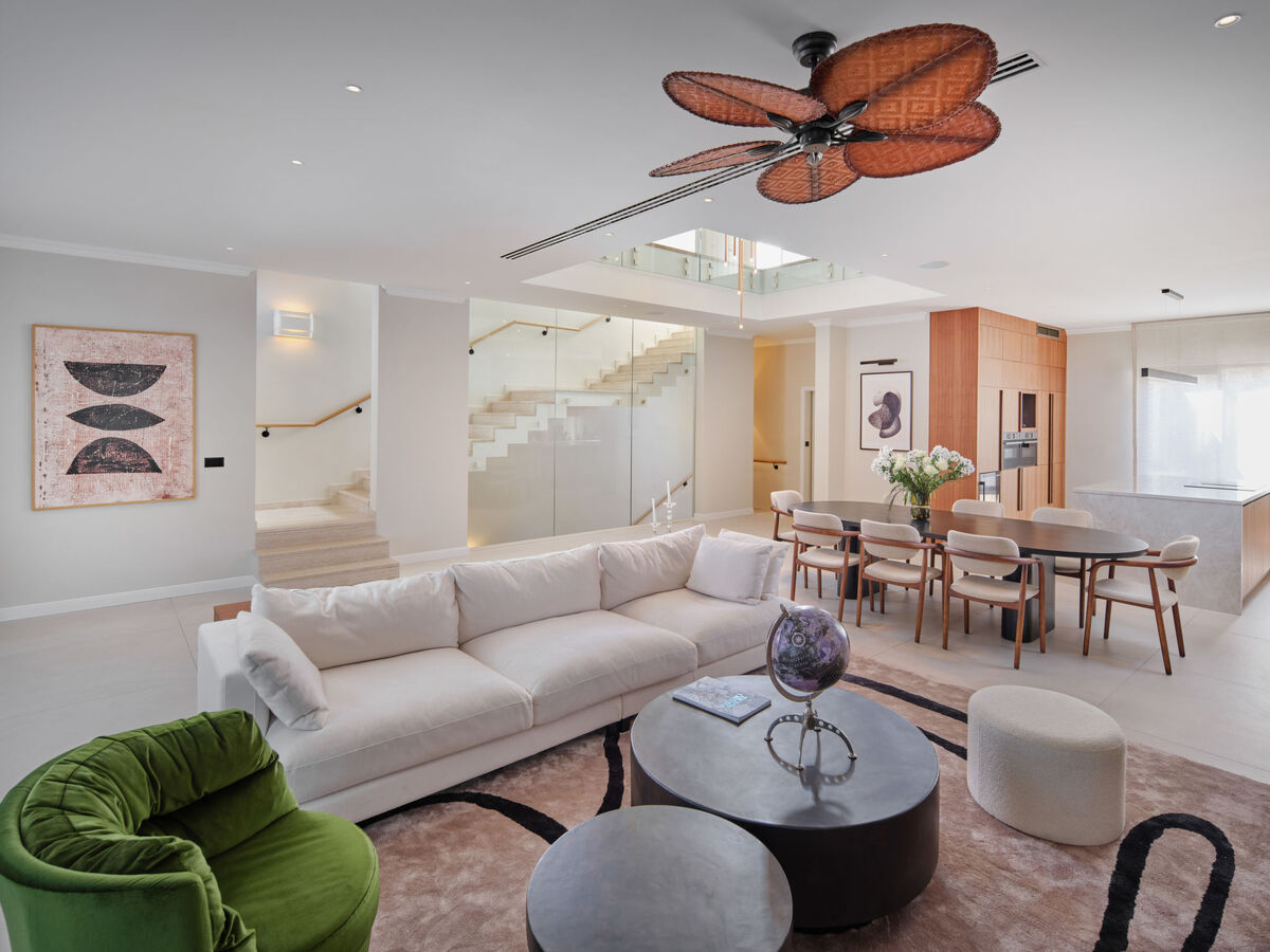 Séjour/salle à manger avec TV (satellite) (écran plat), ventilateur.