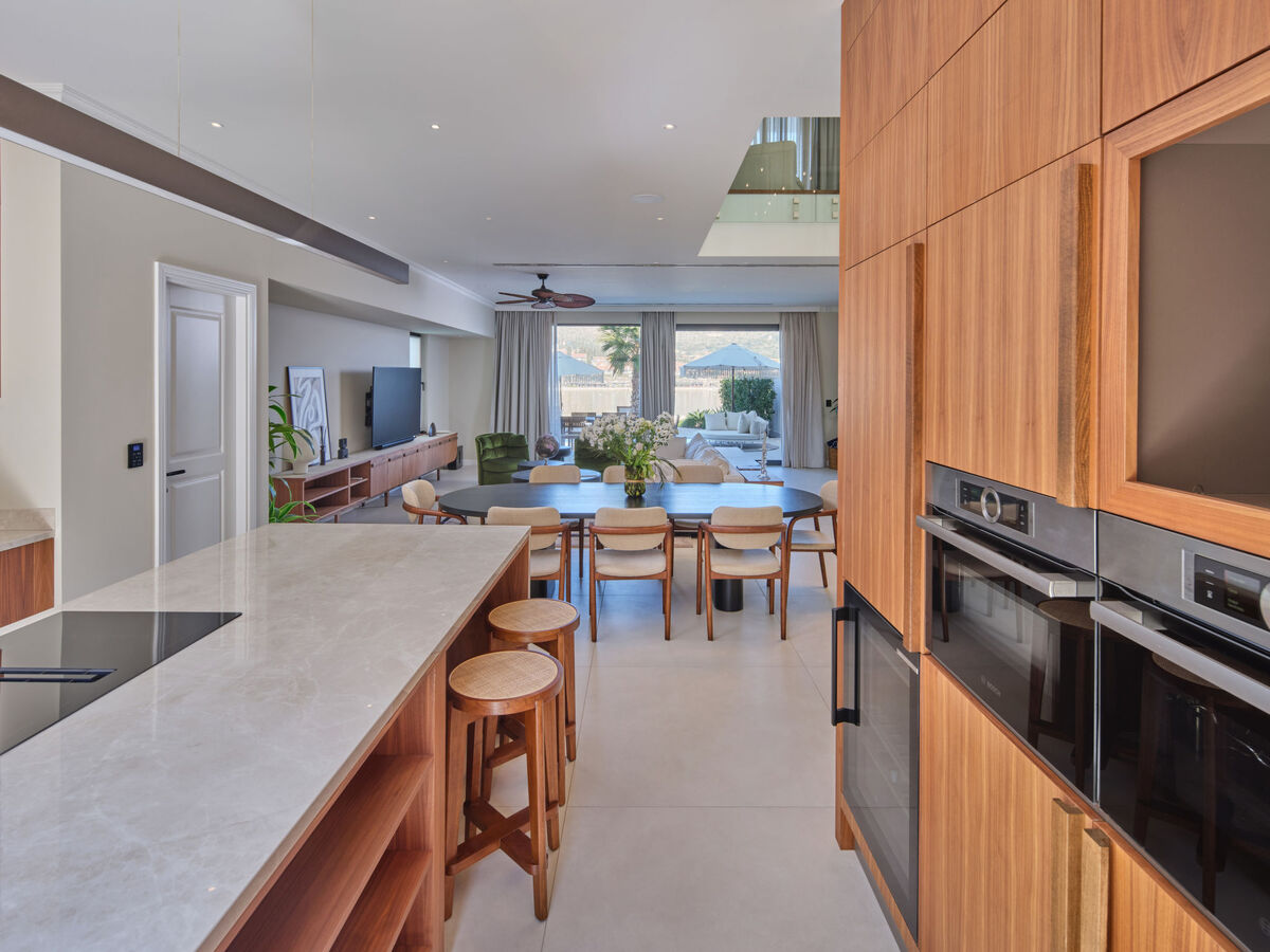 Cuisine ouverte (four, lave-vaisselle, 4 plaques à induction, grille-pain, bouilloire électrique, micro-ondes, congélateur, cafetière électrique, ilot de cuisine).