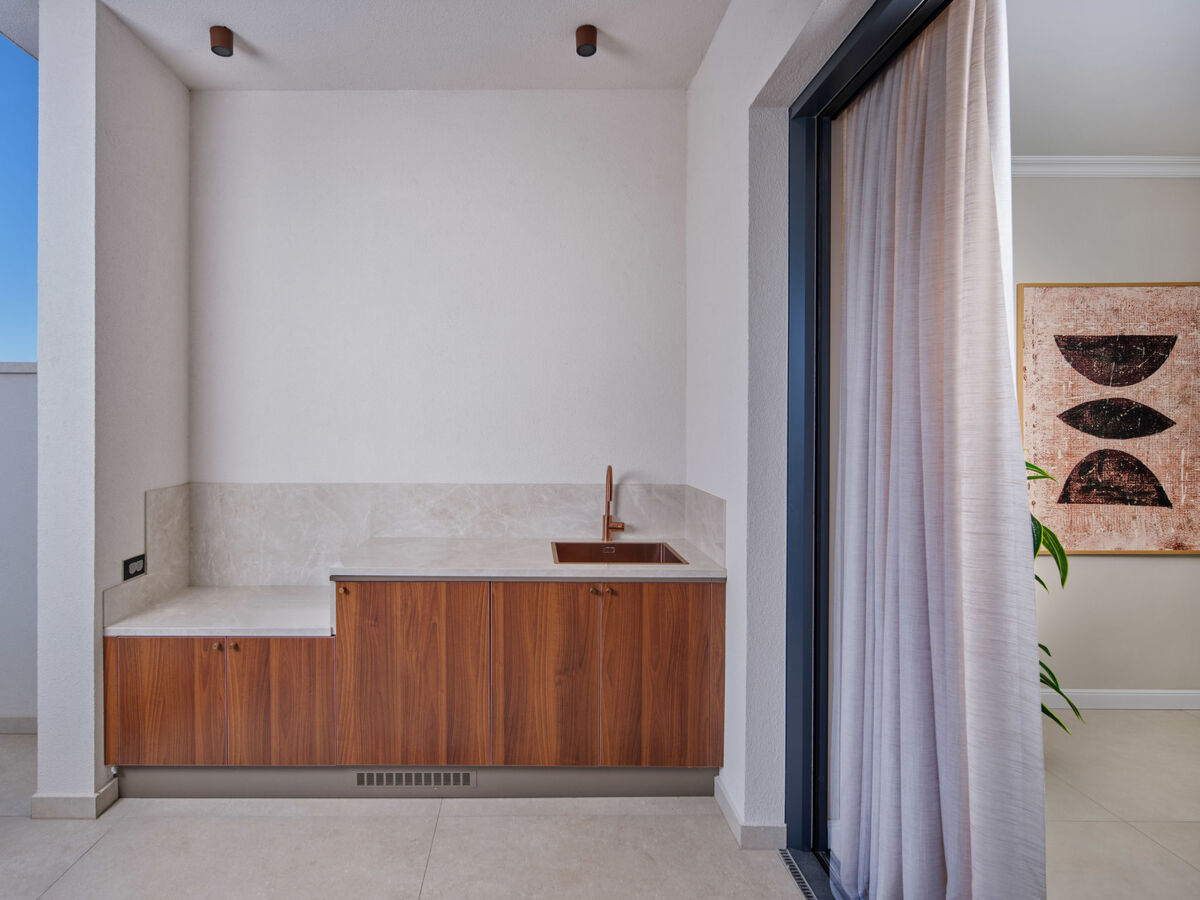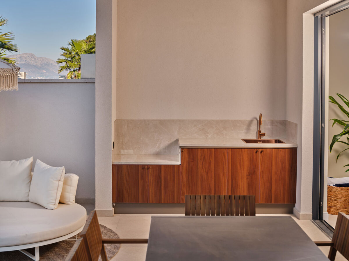 Balcon 8 m2, balcon 2 m2, terrasse 14 m2 partiellement couverte.
