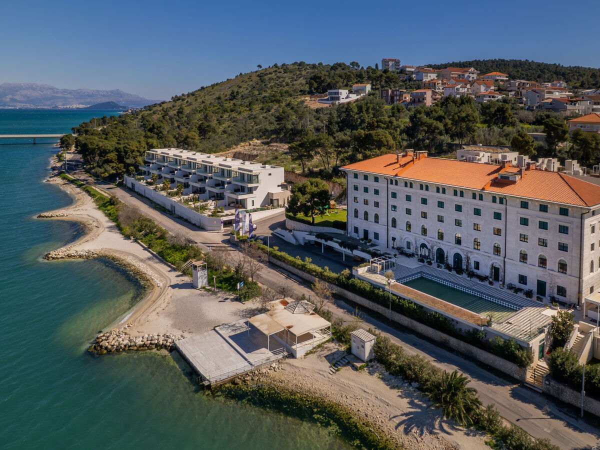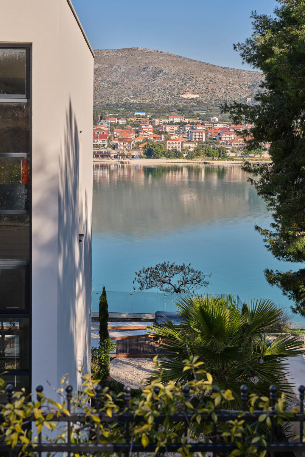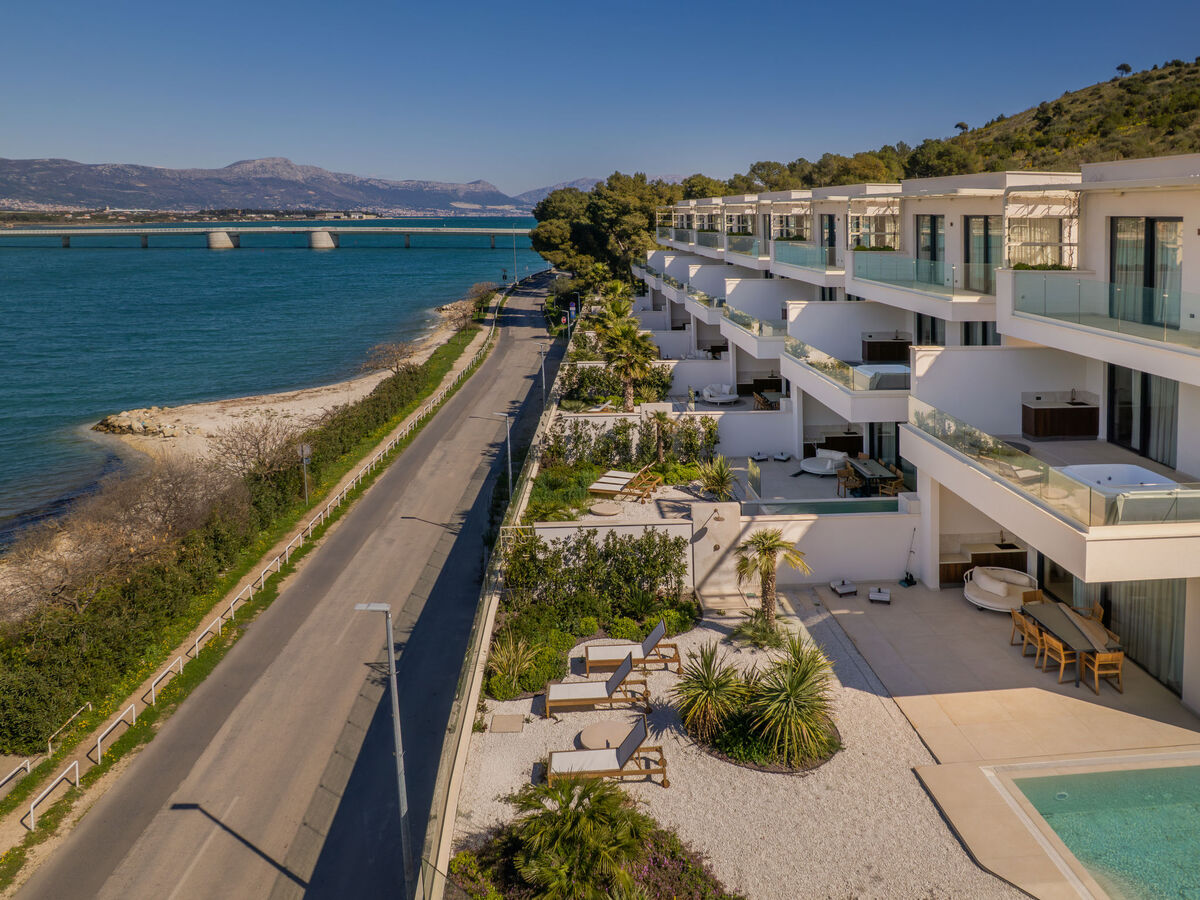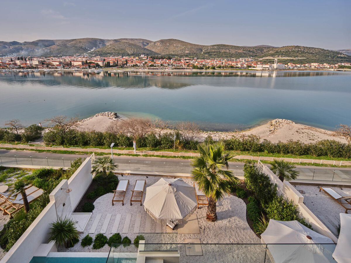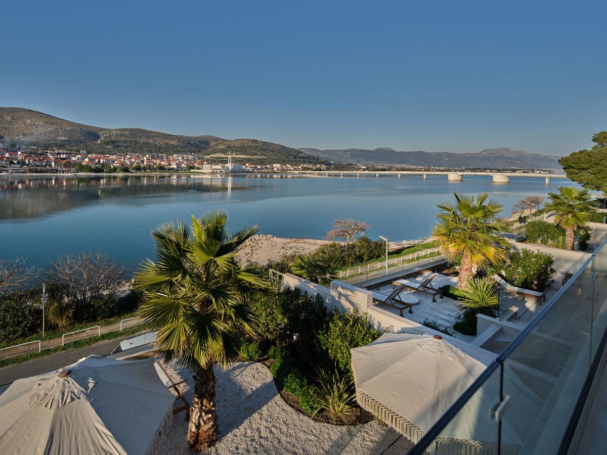 À 700 m du centre de Trogir, à 10 m de la mer, à 10 m de la plage, route à traverser, orientée nord.