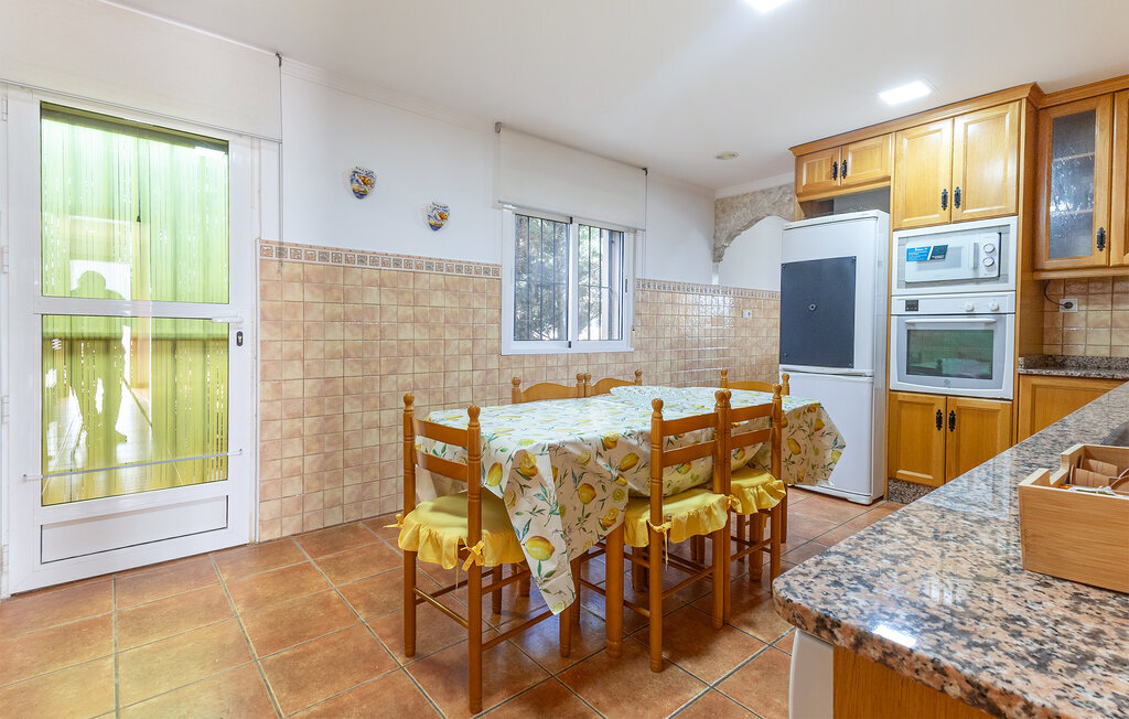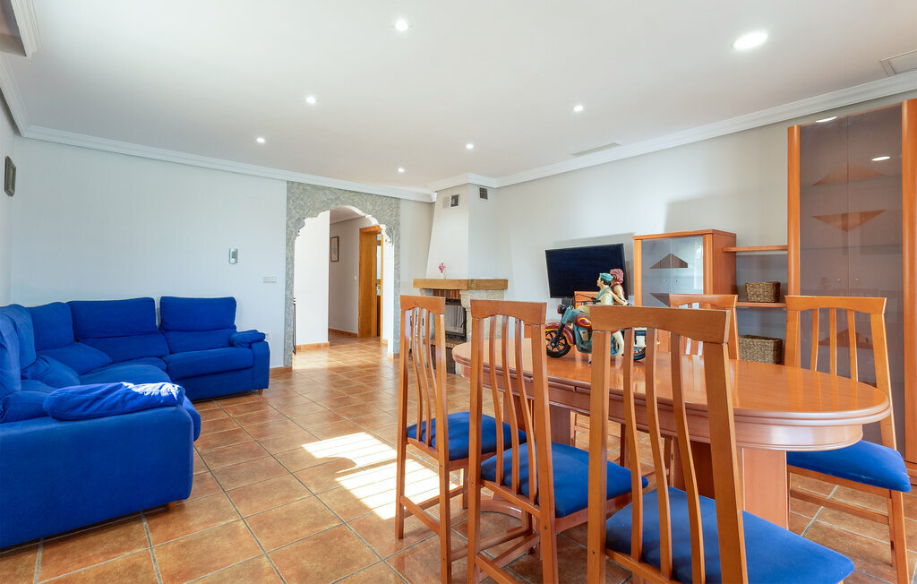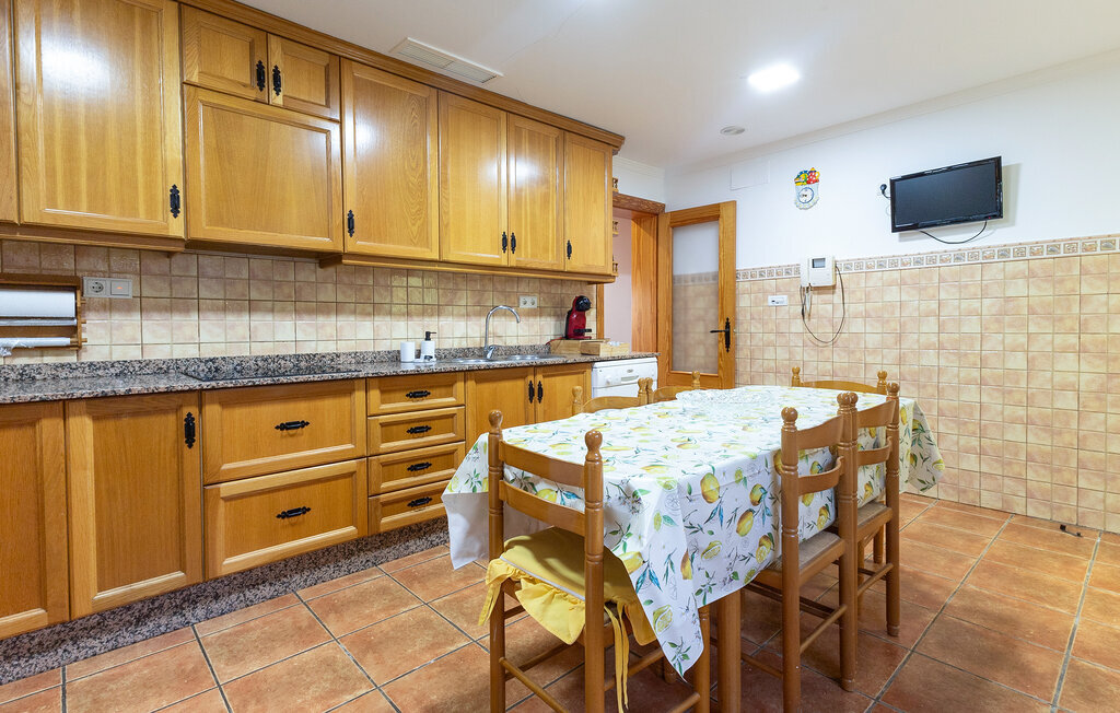 Cette maison de vacances spacieuse vous invite à passer des vacances détendues en famille ou entre amis. Elle est située dans un environnement calme et offre des conditions idéales pour des vacances ensoleillées, loin de l'agitation. Passez votre temps dans le salon agréablement aménagé avec des canapés confortables, un coin repas et une télévision. Détendez-vous à l'intérieur en regardant un film ou savourez un petit déjeuner en commun autour de la table à manger. La cheminée ouverte crée une atmosphère agréable lors des soirées plus fraîches. La cuisine spacieuse offre également de la place pour des repas conviviaux avec une autre table à manger. Cuisinez ensemble, planifiez des excursions ou goûtez aux spécialités régionales.
