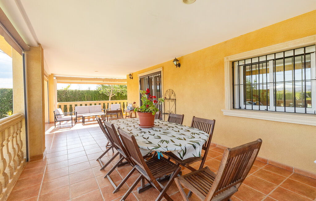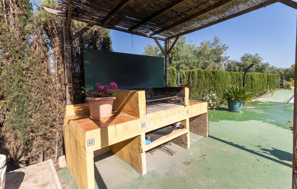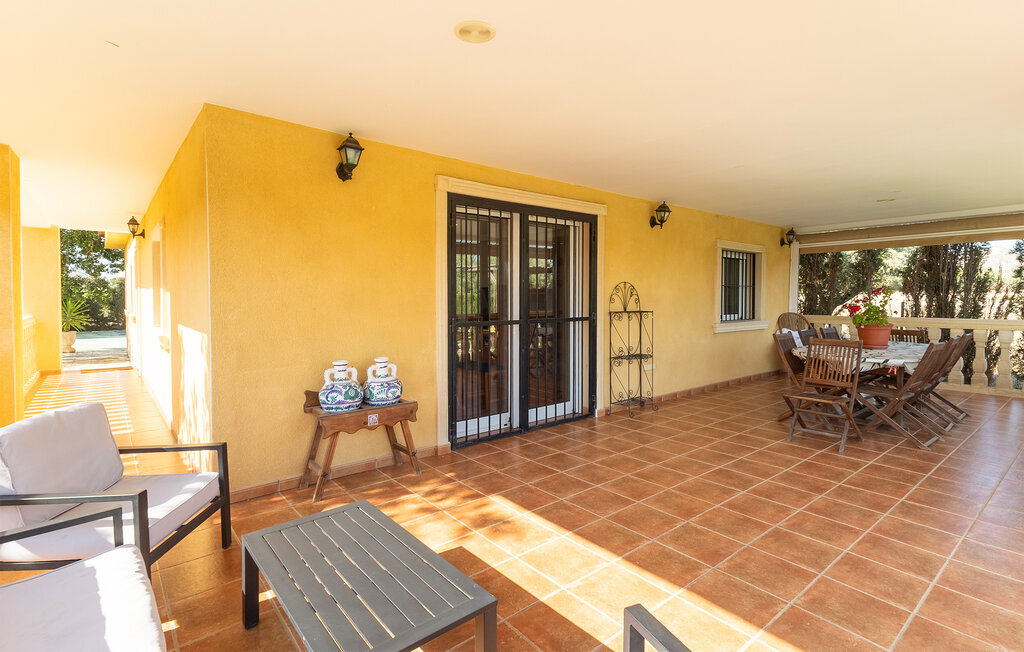 L'espace extérieur bien entretenu avec des plantes méditerranéennes invite à la détente. Sortez sur la grande terrasse couverte et prenez place à la longue table avec vue sur la piscine. Faites quelques brasses ou installez-vous confortablement sur les chaises longues. Profitez des endroits ombragés ou faites un barbecue sous le kiosque dans le jardin.