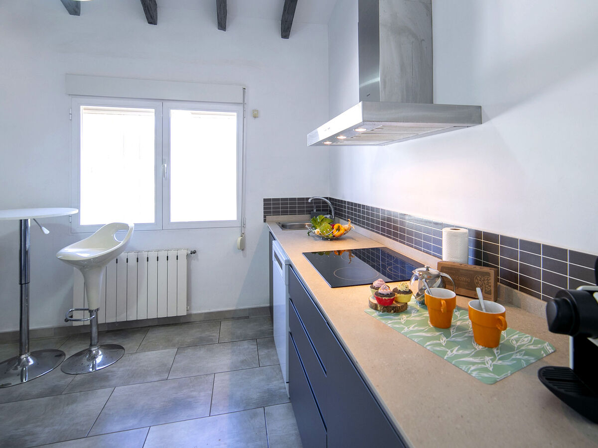 Cuisine ouverte (four, lave-vaisselle, 3 plaques vitrocéramiques, grille-pain, bouilloire électrique, micro-ondes, cafetière électrique).