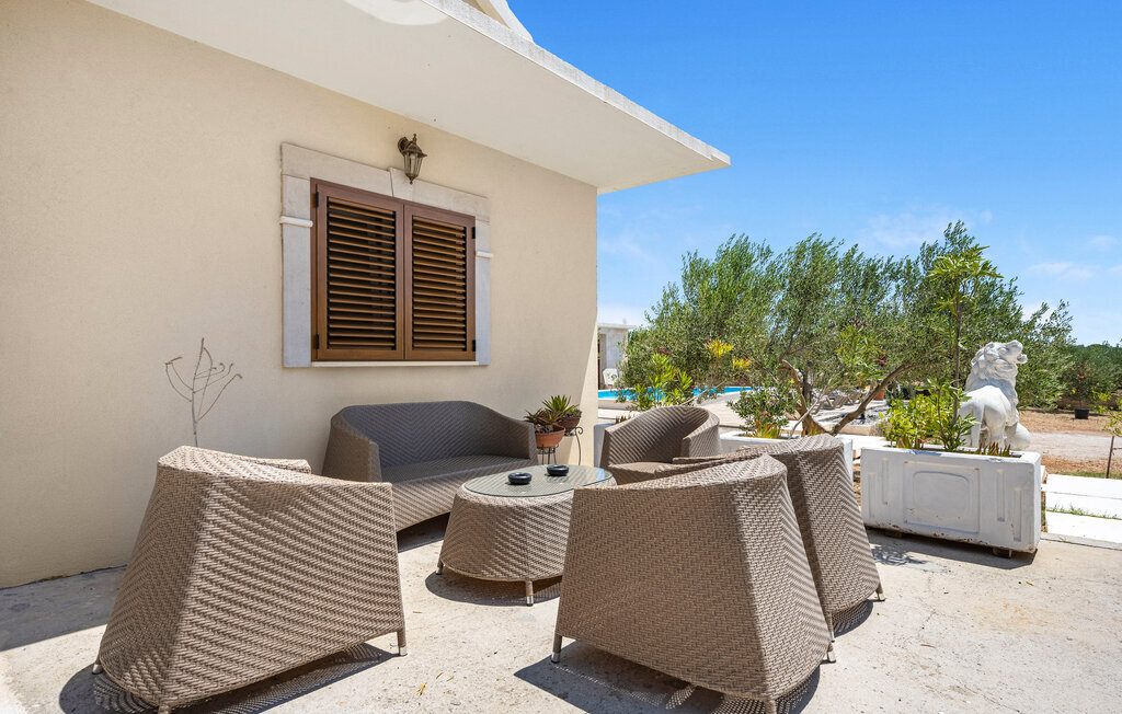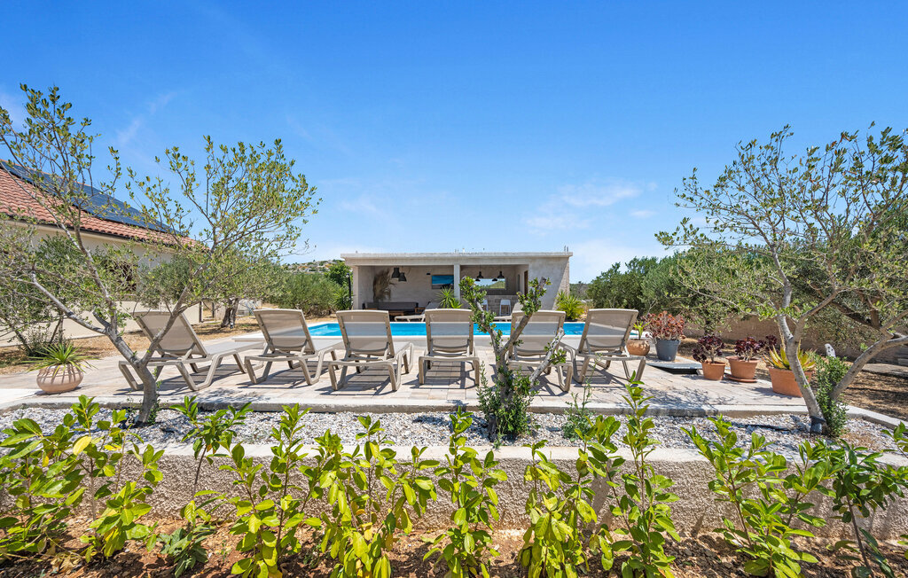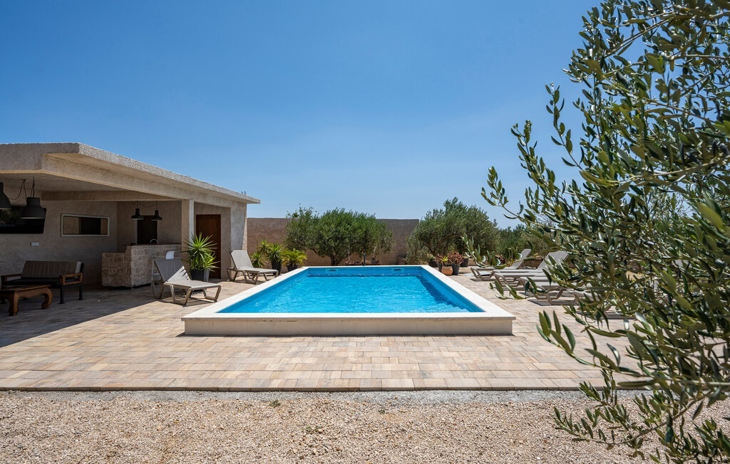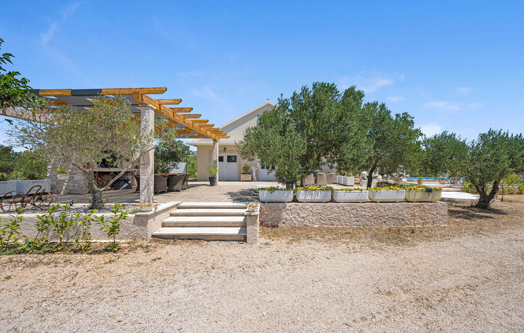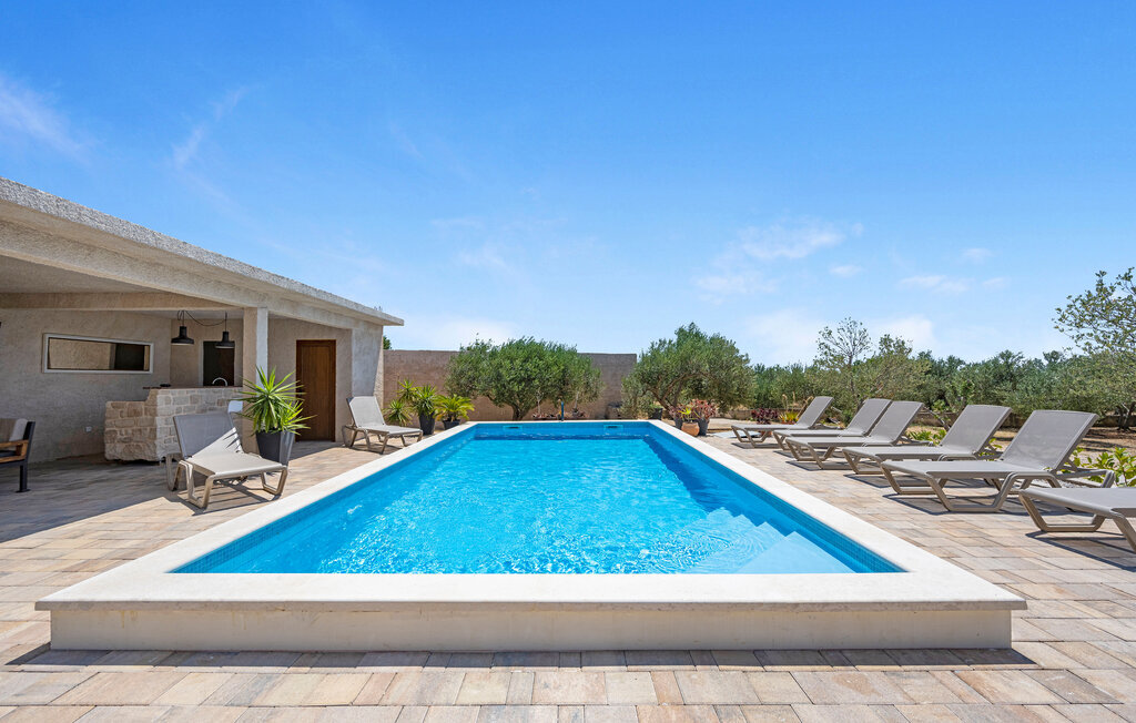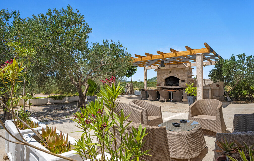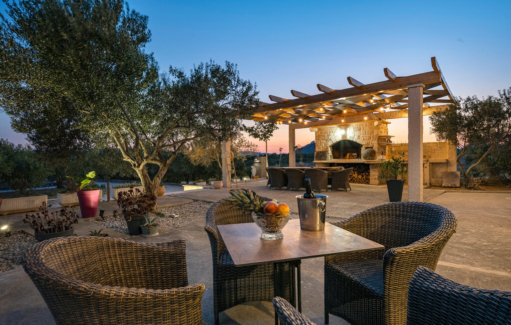 L'espace extérieur sensationnel est un véritable havre de paix. Le matin, faites tranquillement des longueurs dans la magnifique piscine, prenez le soleil sur la chaise longue et offrez-vous une boisson rafraîchissante à l'ombre. Écoutez le doux crépitement de la cheminée extérieure ou savourez les délices du barbecue avec vue sur l'oliveraie.
