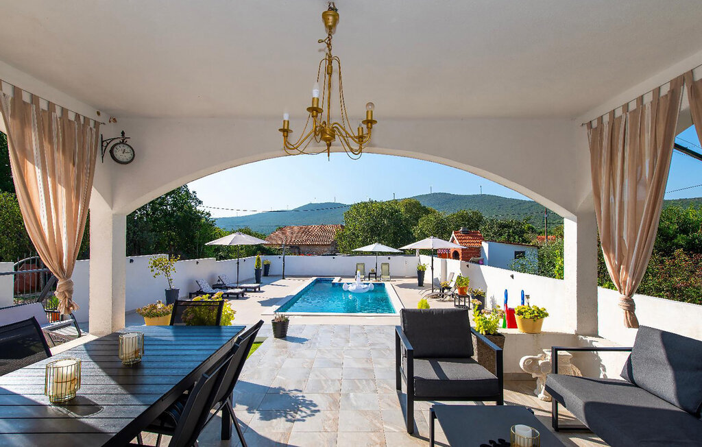 Détendez-vous dans une maison de vacances spacieuse avec piscine et vue panoramique.
