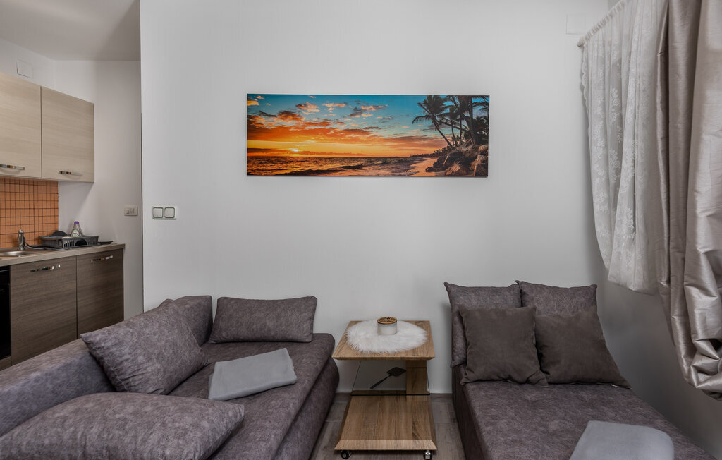 Dès le matin, promenez-vous sur la plage toute proche pour un bain de mer rafraîchissant. Explorez l'impressionnante grotte de Biserujka sur l'île de Krk, à une courte distance en voiture, ou faites un tour en bateau vers les îles voisines de Rab et Goli Otok. Faites une randonnée dans le parc national de Risnjak, où vous pourrez parcourir des sentiers bien balisés dans une nature intacte. Visitez la charmante petite ville de Novi Vinodolski avec sa vieille ville historique et le point de vue de Vidikovac Gradina.