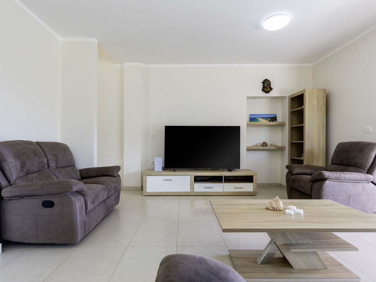 Séjour/salle à manger avec TV (satellite) et air-conditionné.