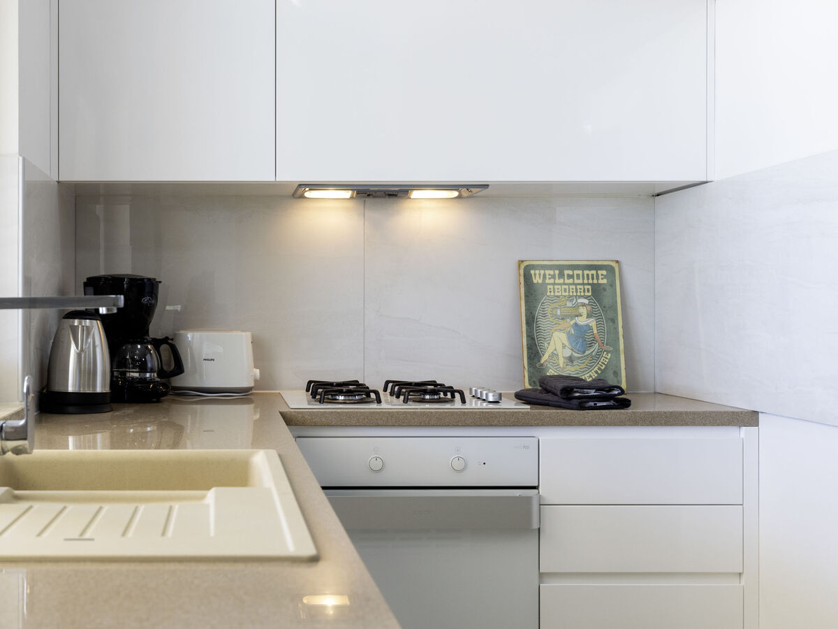 Cuisine ouverte (1 plaque de cuisson, four, lave-vaisselle, 3 feux, grille-pain, bouilloire électrique, micro-ondes, congélateur, cafetière électrique).