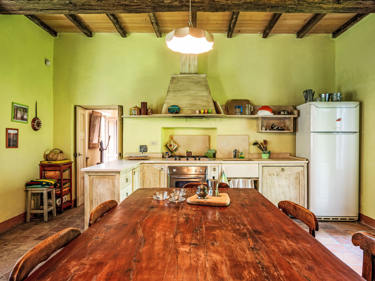 Grande cuisine/séjour (four, lave-vaisselle, 5 feux, bouilloire électrique) avec cheminée (uniquement à titre de décoration), table pour les repas.
