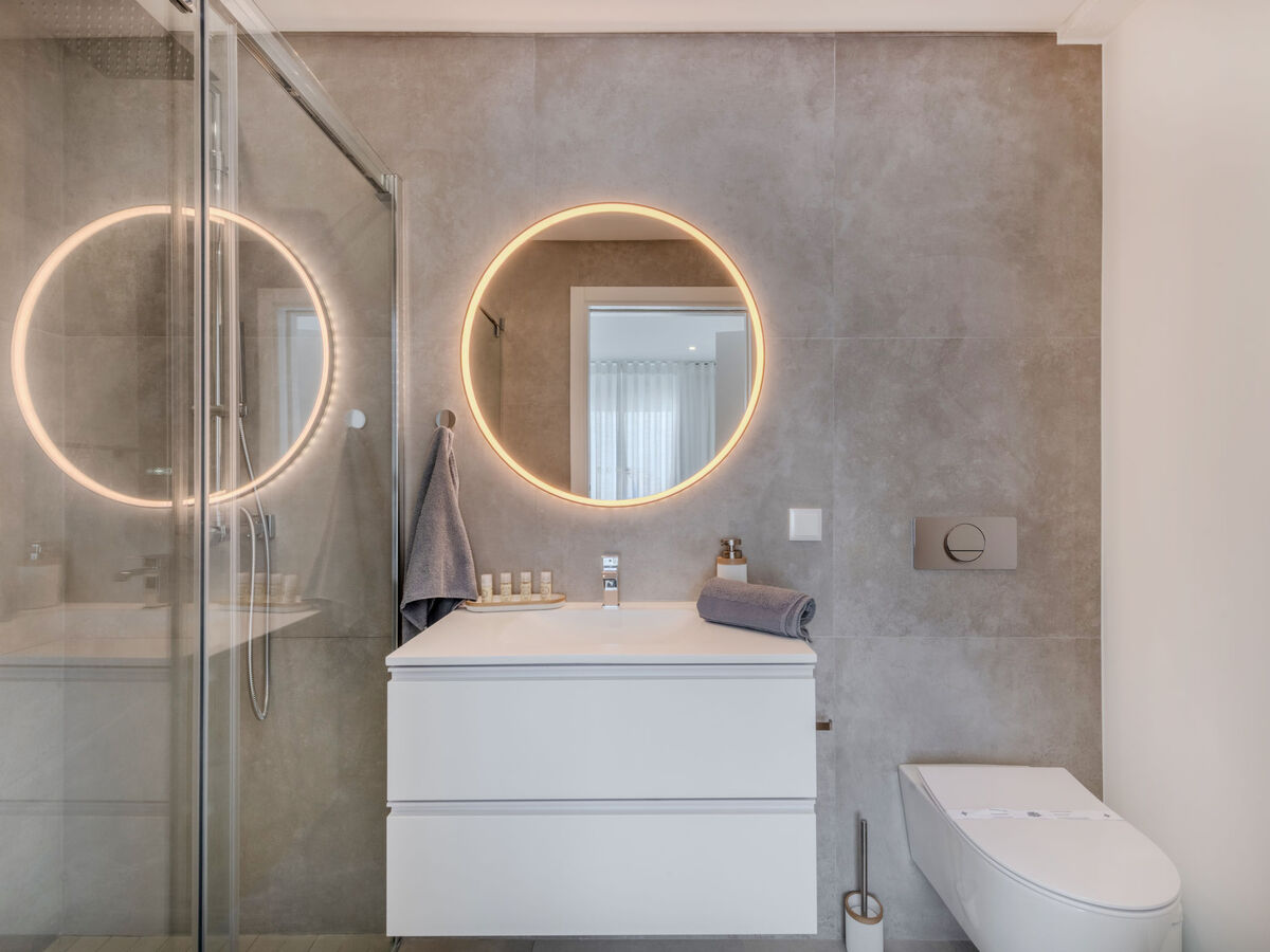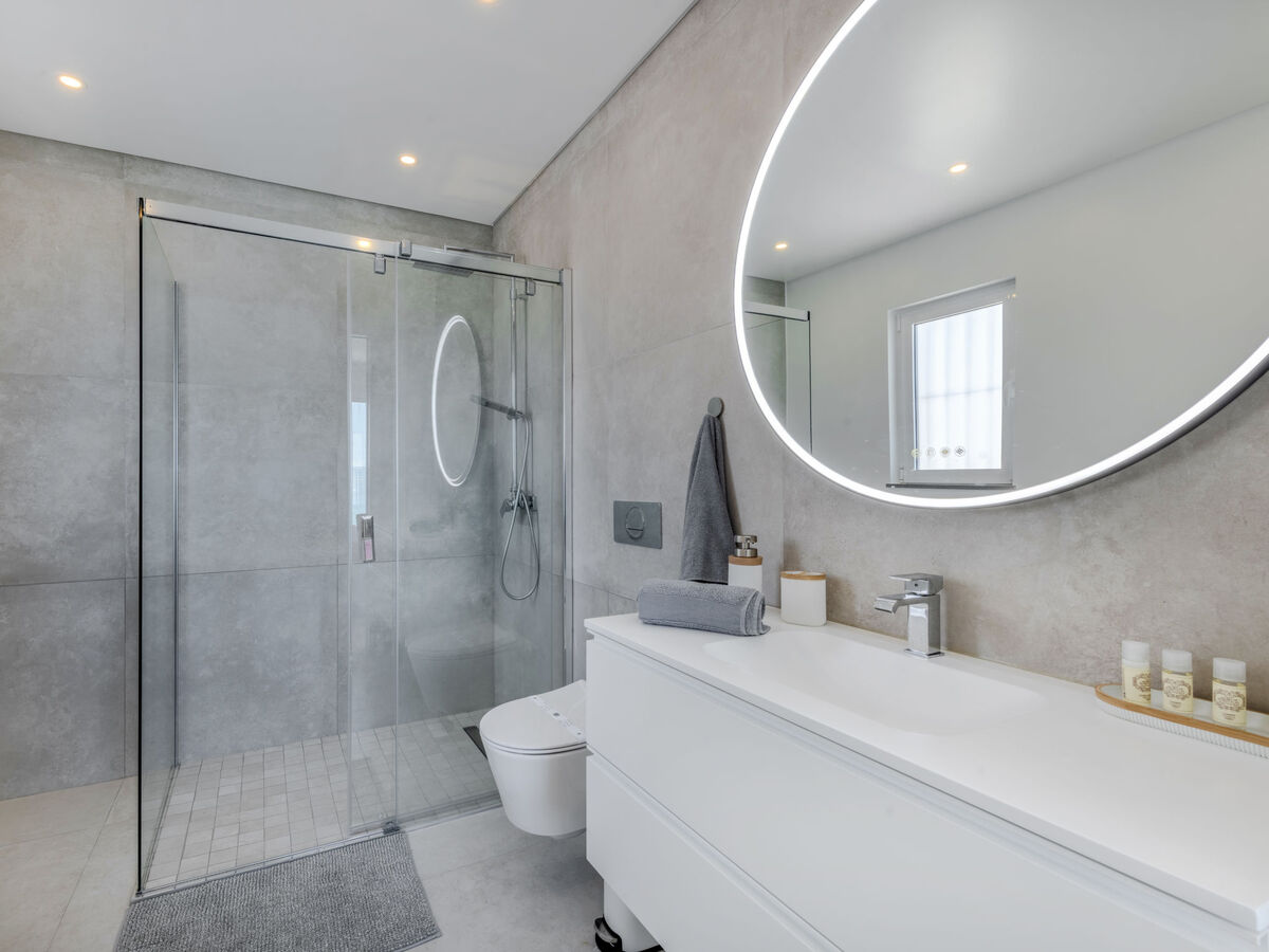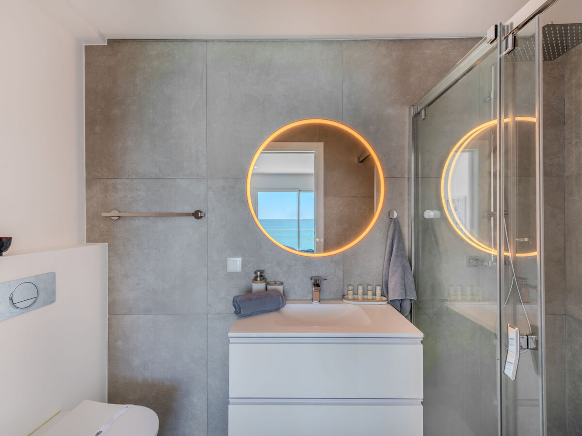 2ème étage: 2 chambres, chaque chambre avec: 1 grand-lit (160 cm, longueur 200 cm), douche/WC, air-conditionné et chauffage à air chaud.