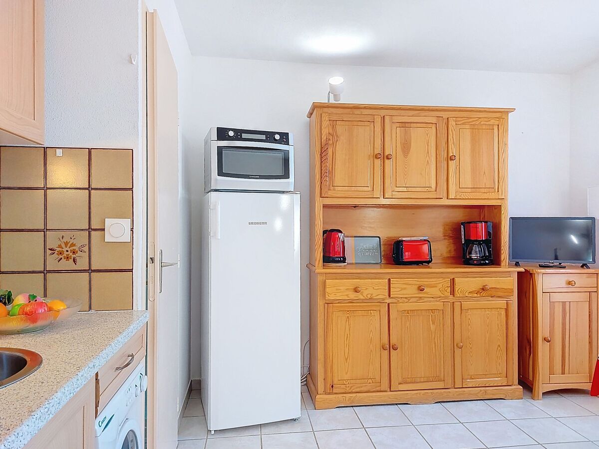 Cuisine/séjour (2 plaques vitrocéramiques, grille-pain, bouilloire électrique, cafetière électrique, combiné micro-ondes).