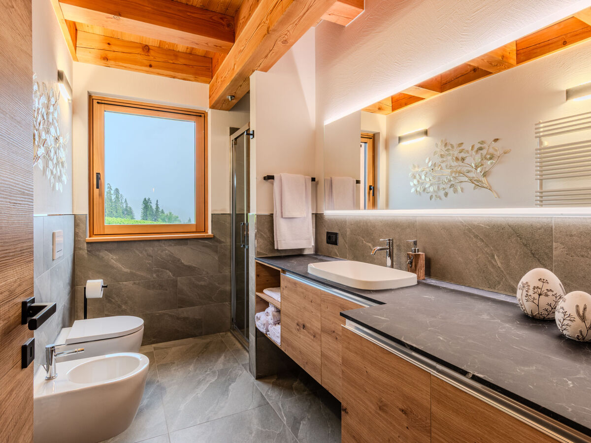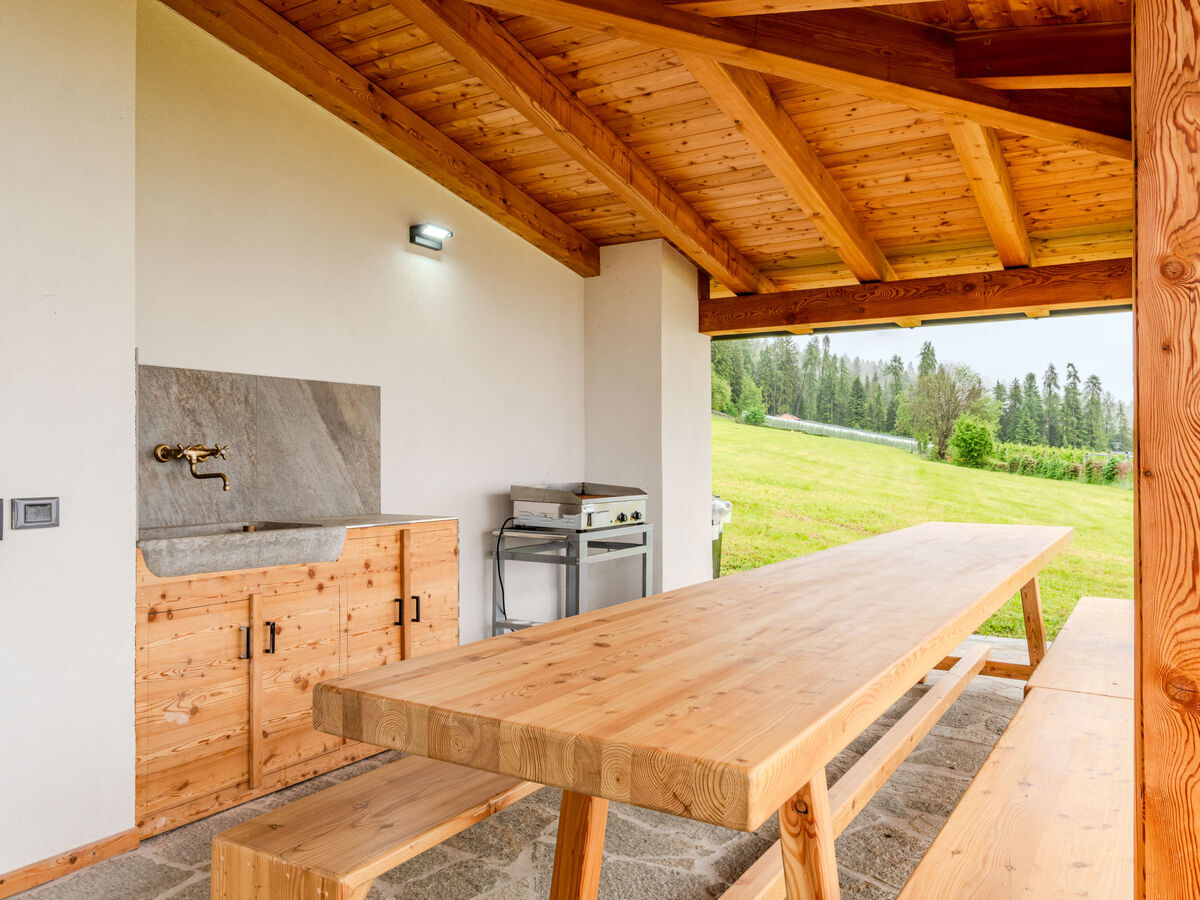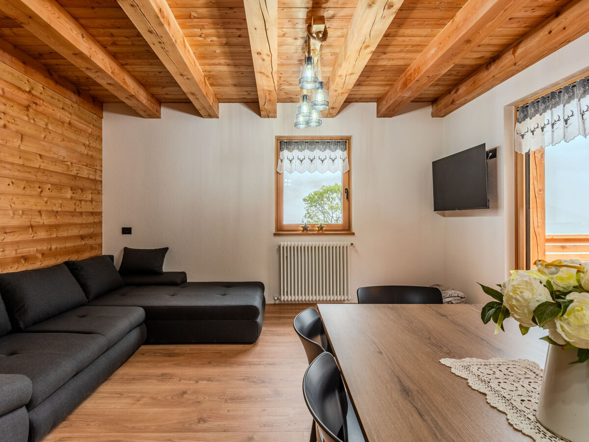 Dans le quartier de Preghena, situation ensoleillée sur une colline, à 20 m de la forêt, à 13 km du lac, à 20 km du domaine skiable, dans la verdure, orientée sud.
