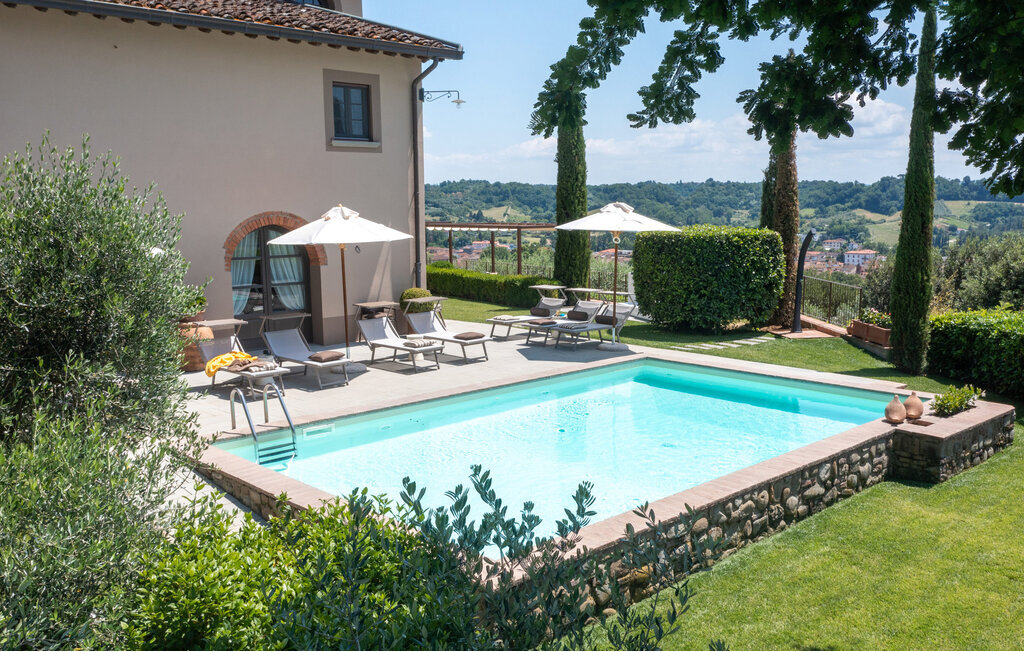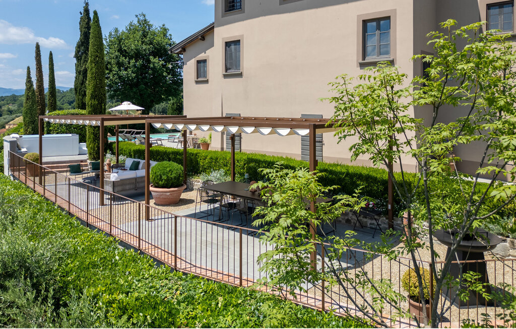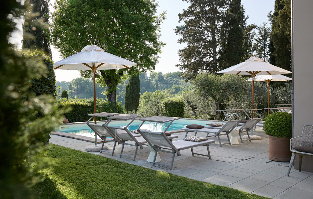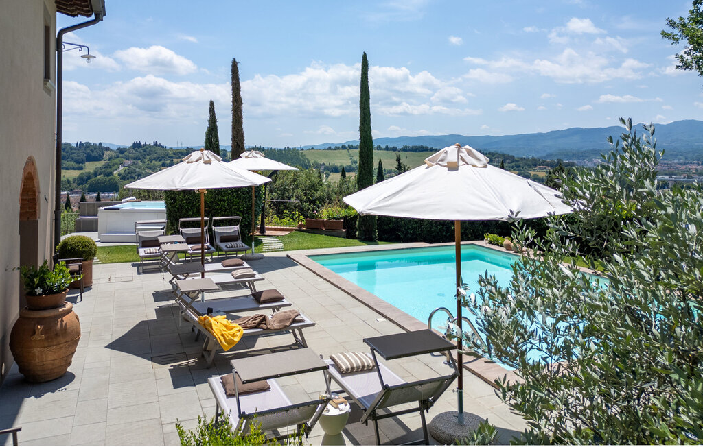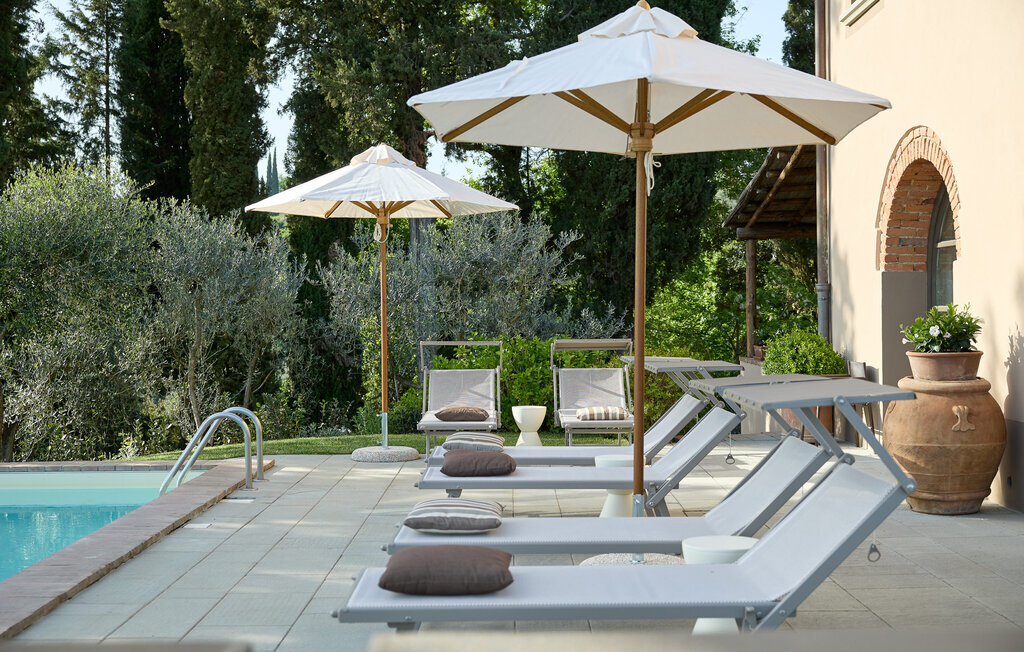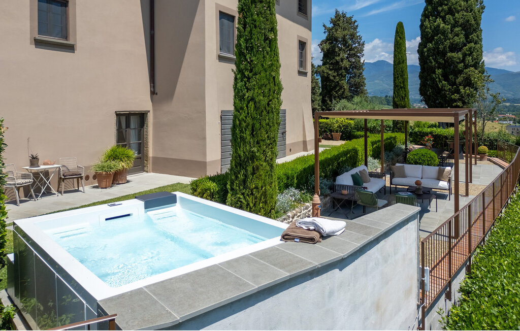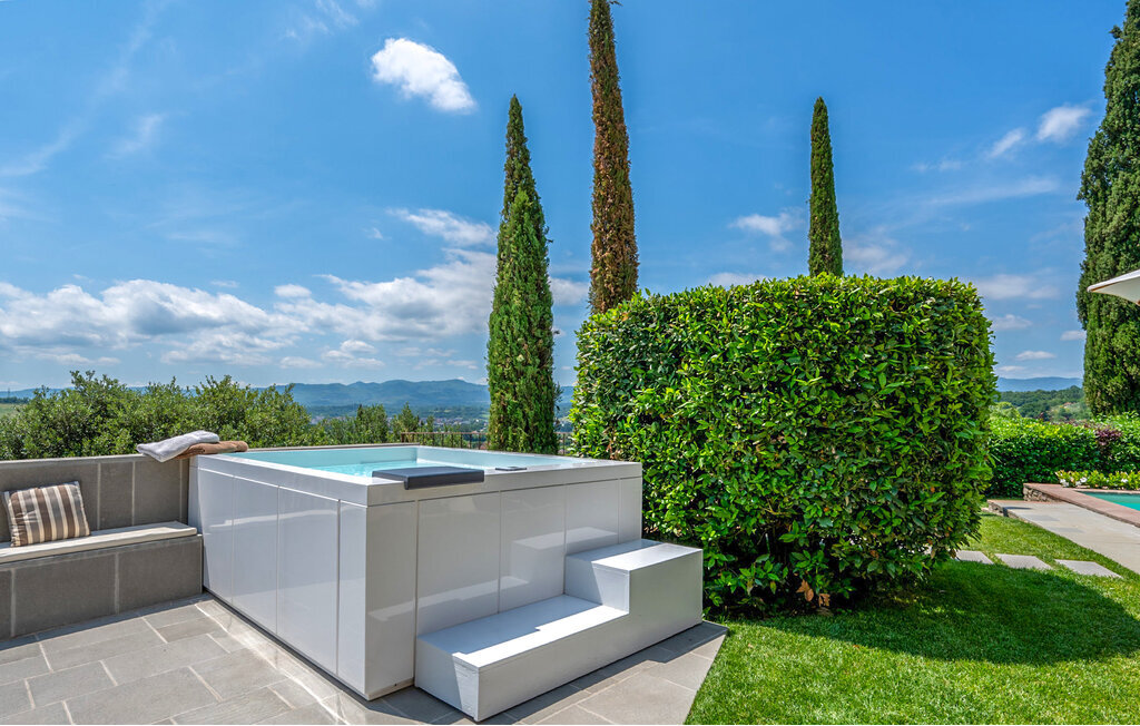 Bien-être à l'extérieur : Location de vacances disposant de chaises-longues et d'un ou plusieurs équipements tels que piscine extérieure, jacuzzi extérieur, lit à baldaquin de jardin etc...