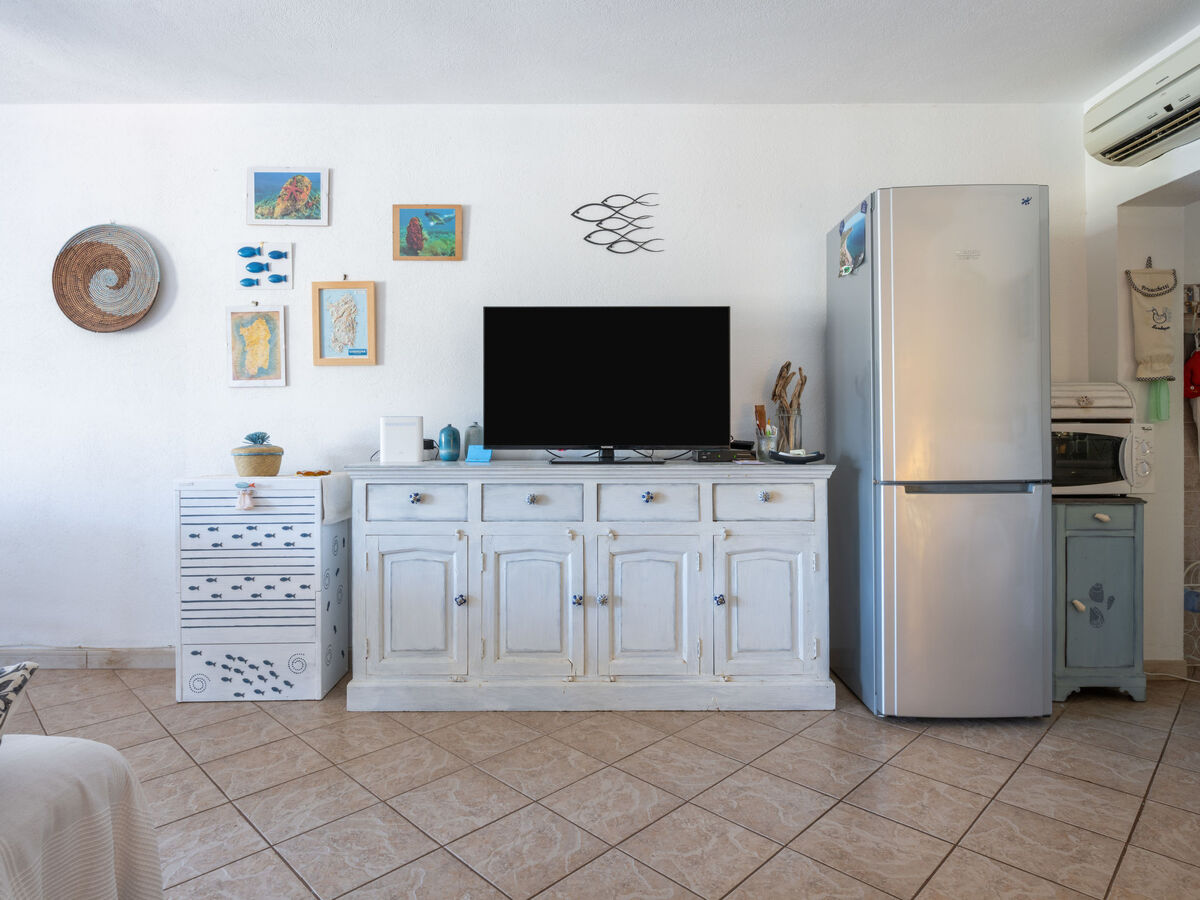 Aménagement confortable et plaisant: séjour/salle à manger avec 1 divan-lit double, table pour les repas, TV et air-conditionné.