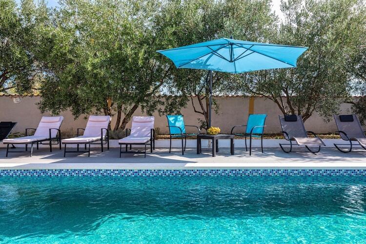This five bedroom villa with swimming pool can accommodate up to fourteen people. It features free WiFi, air conditioning as well as SAT LCD TV. The open space living room comes with sofa and sitting area, and it's combined with the equipped kitchen and dining area. All the bedrooms are furnished with large double beds. One bathroom comes with a shower, while the other one is fitted with bathtub. Washing machine, iron and ironing board are at your disposal.