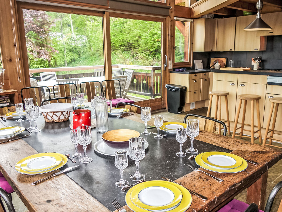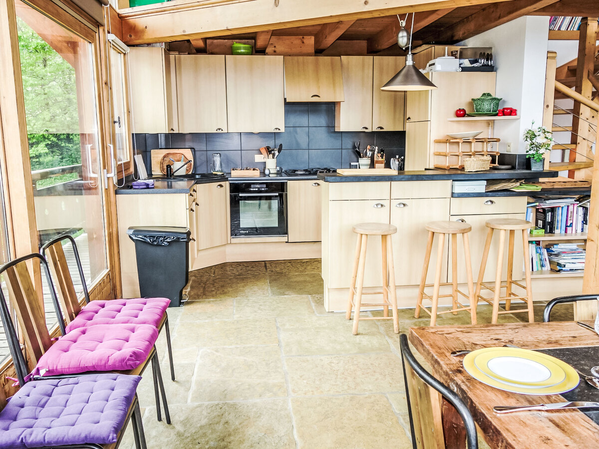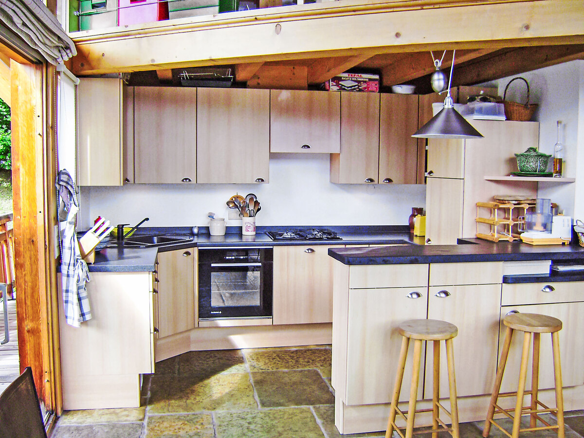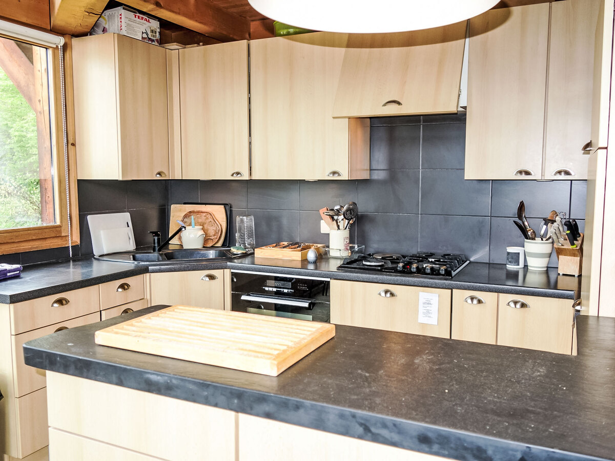 Cuisine (4 plaques de cuisson, four, lave-vaisselle, grille-pain, bouilloire électrique, micro-ondes, congélateur, cafetière électrique, appareil à raclette).