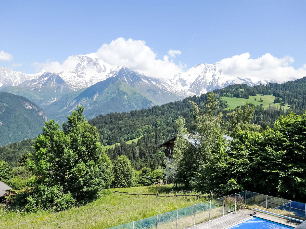 Très belle vue sur les montagnes, la vallée et Le Mont Blanc.