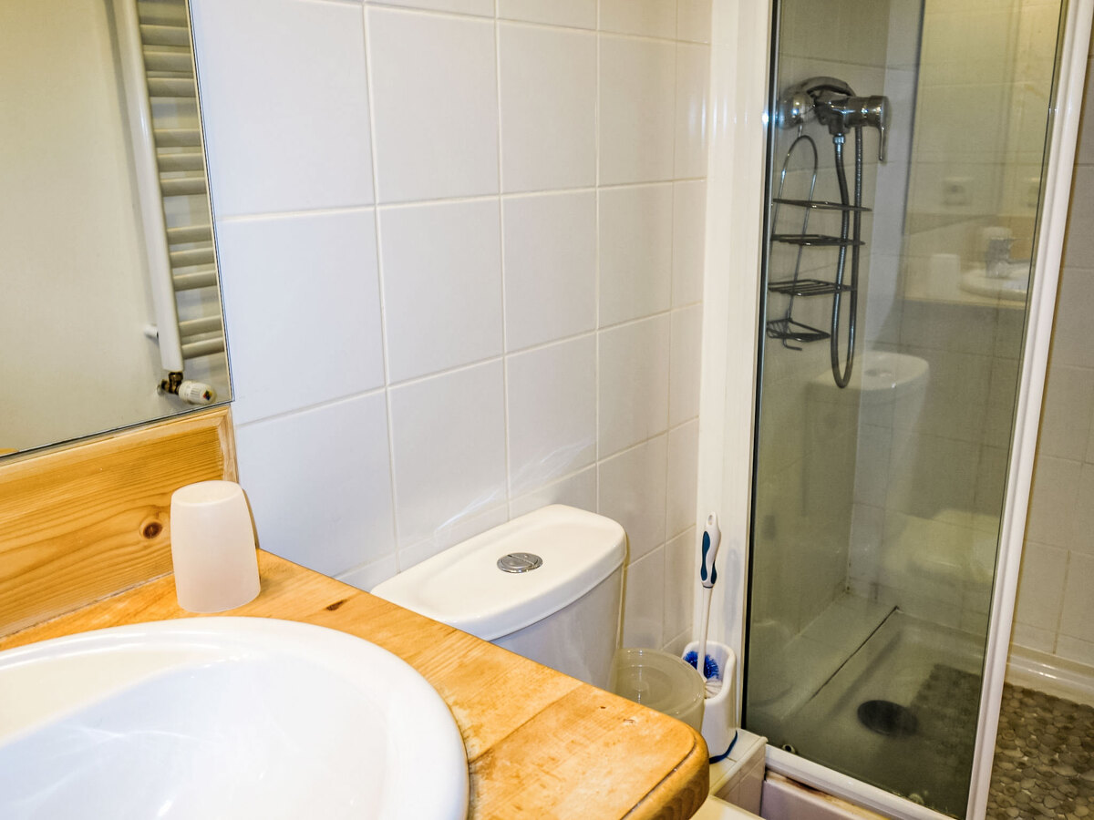 1 chambre avec 1 grand-lit (160 cm), bain/WC.