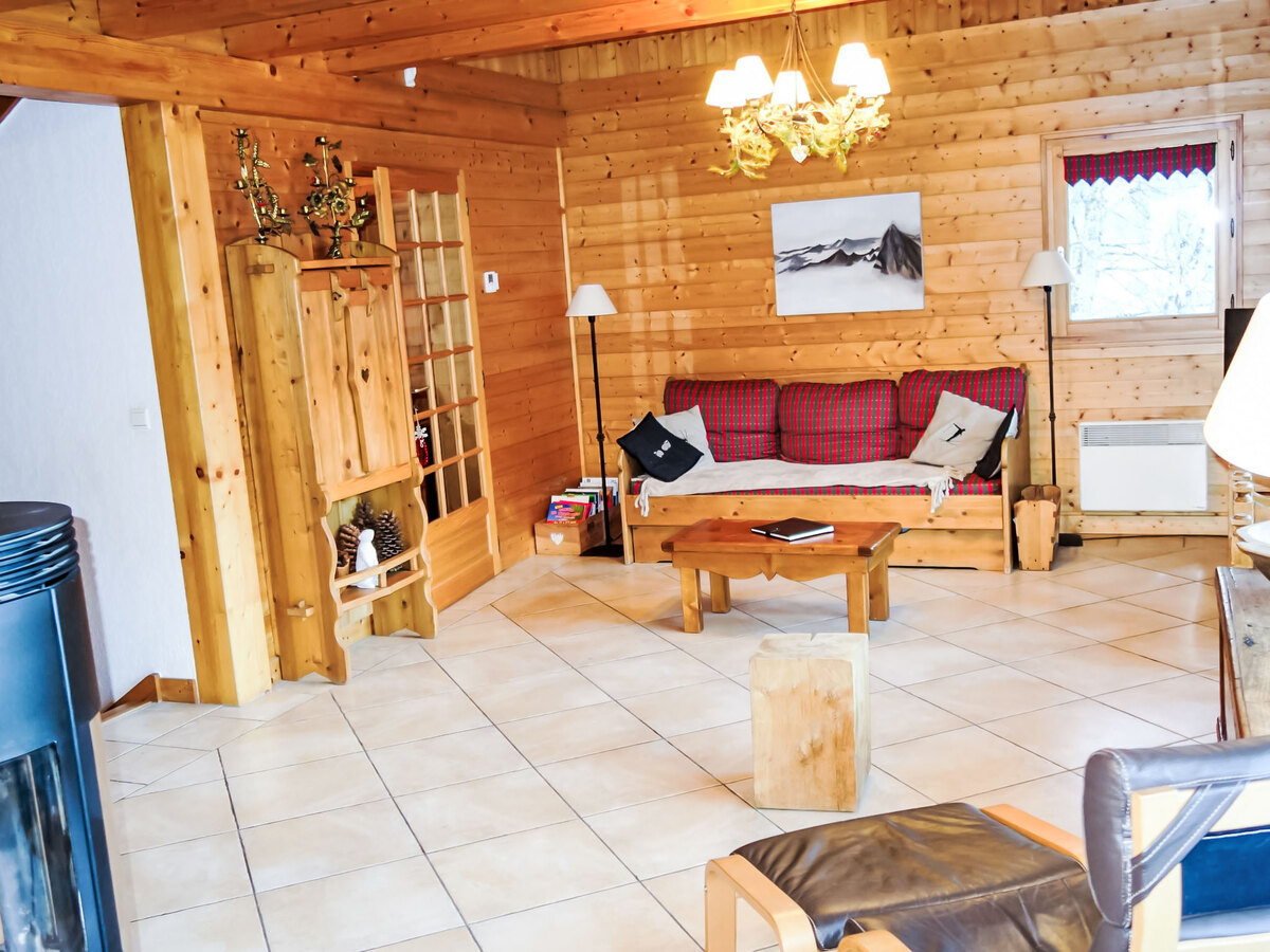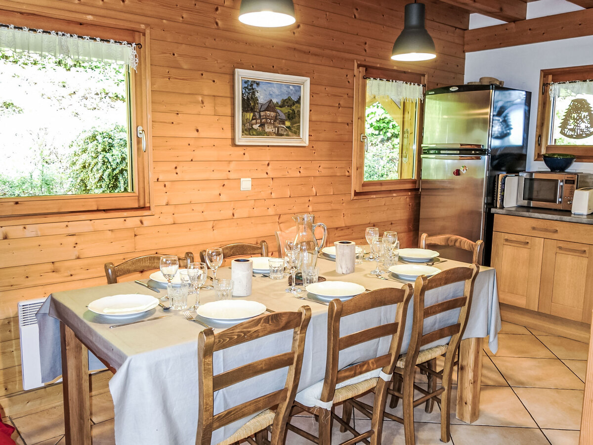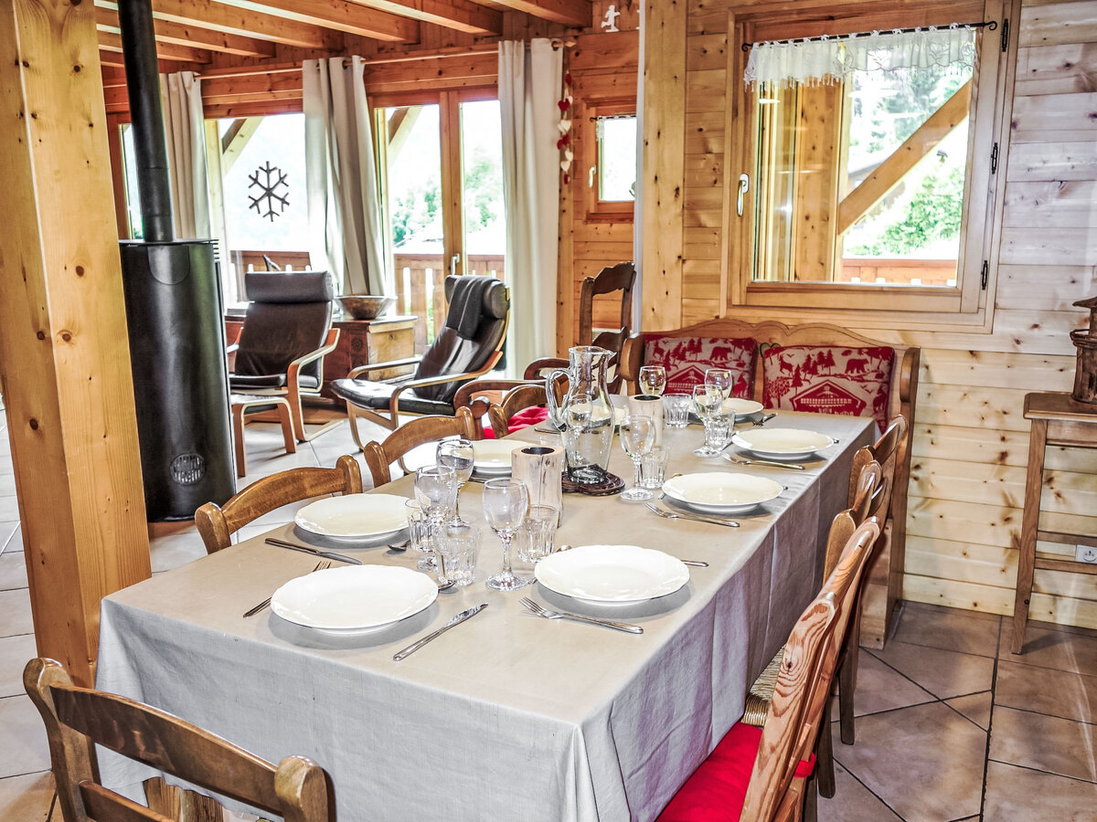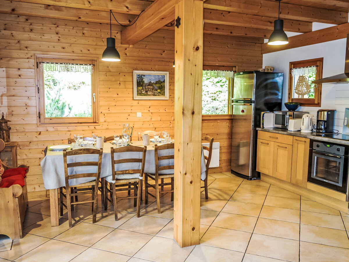 Aménagement confortable et agréable: séjour/salle à manger avec TV, radio, lecteur CD et poêle à bois.