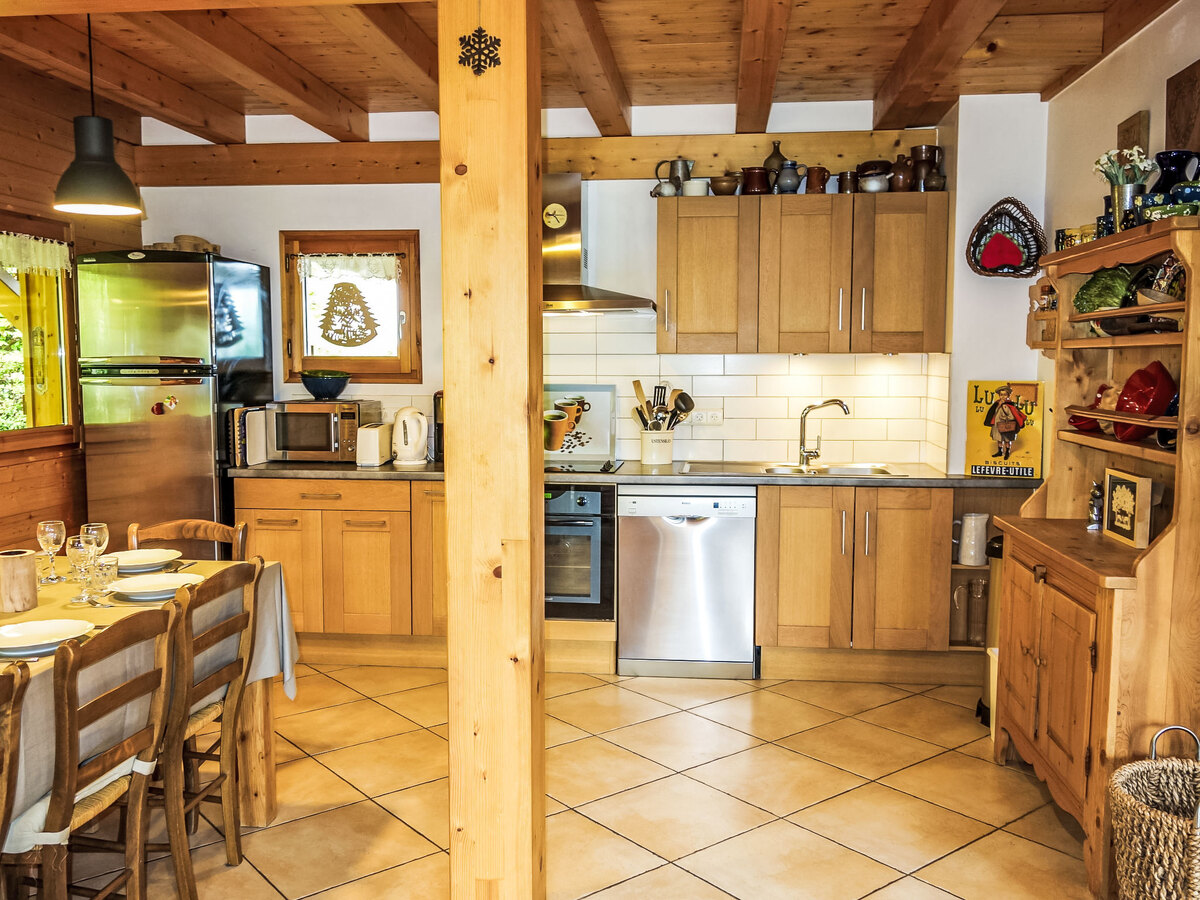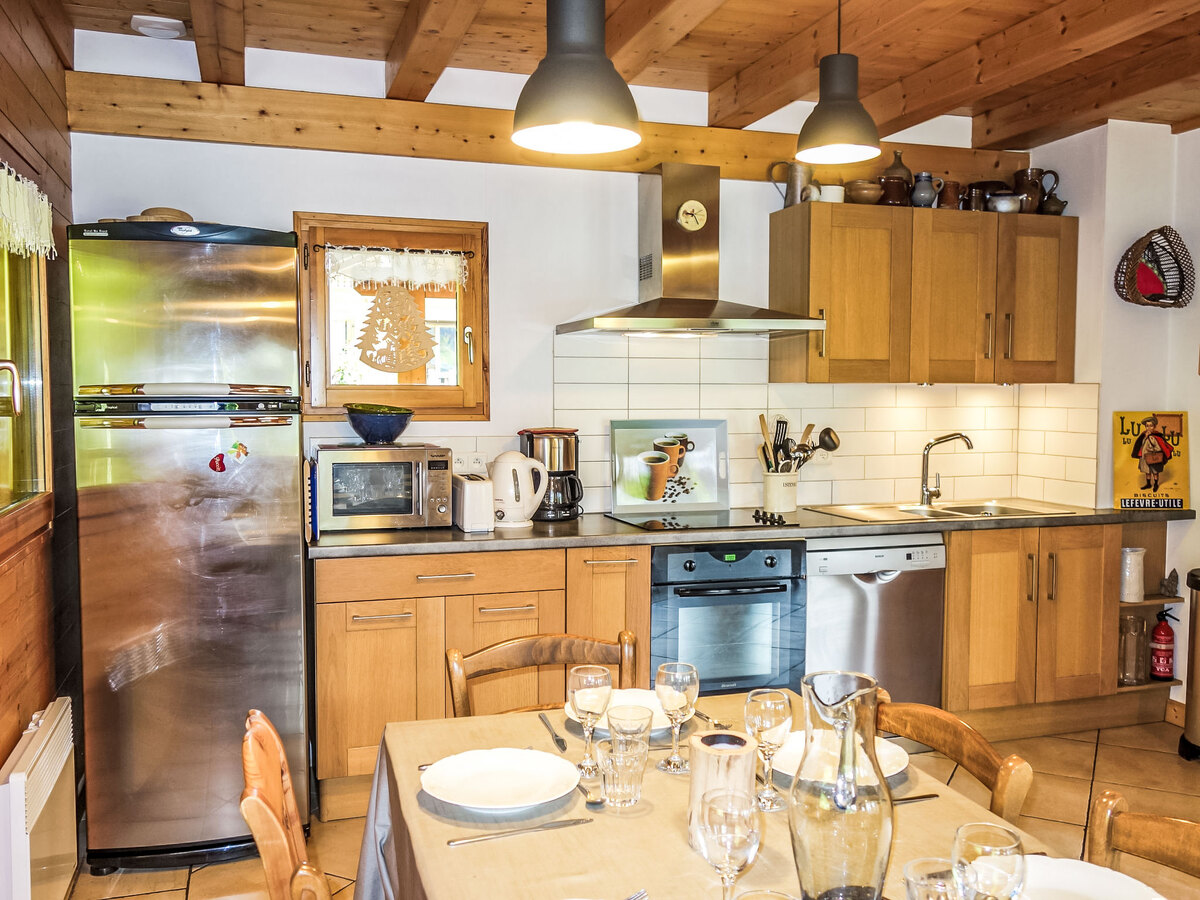 Cuisine ouverte (four, lave-vaisselle, 4 plaques vitrocéramiques, grille-pain, bouilloire électrique, micro-ondes, cafetière électrique).