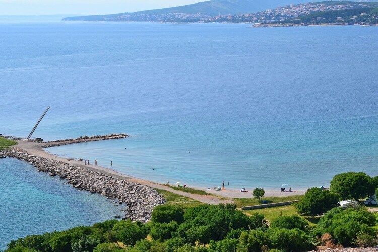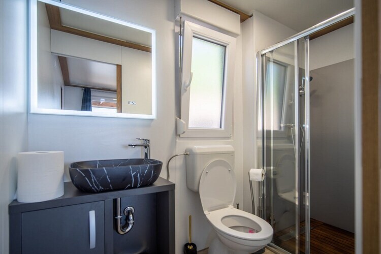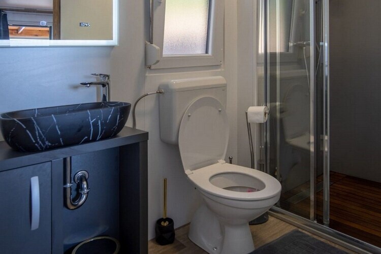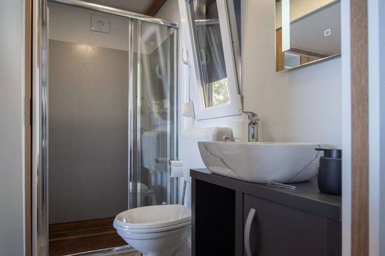 The Seaside Deluxe Escape at Camp Klenovica in Primorje-Gorski Kotar County, Croatia, offers a picturesque camping experience by the Adriatic Sea. This campsite is situated on a 12-hectare area, 54 km south of Rijeka, with a mix of rocky and gravel beaches. It features mobile homes equipped with modern amenities such as air conditioning, two bedrooms, a kitchen, a dining area, a bathroom, and a wooden terrace with seating. Guests staying in mobile homes also enjoy free access to the camp's swimming pools.