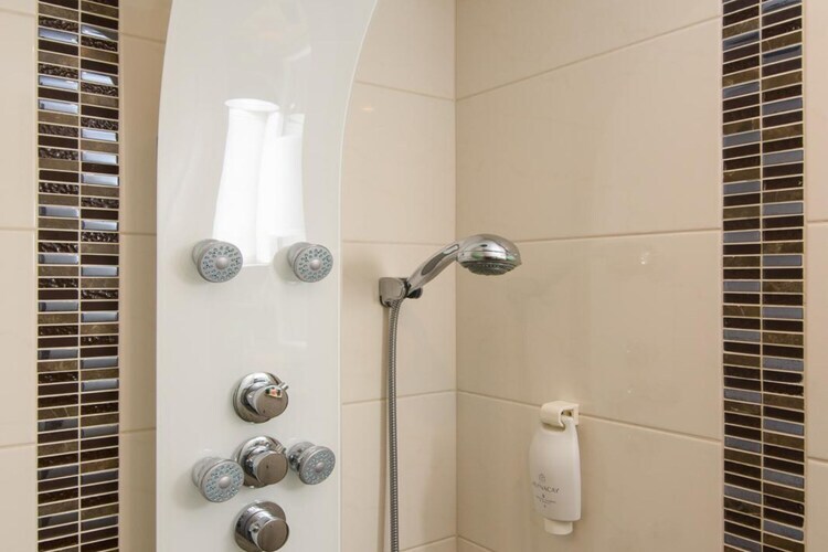 This two-bedroom can accommodate up to five guests. It features a TV and is combined with a sofa and kitchen. The private bathroom is equipped with a shower.