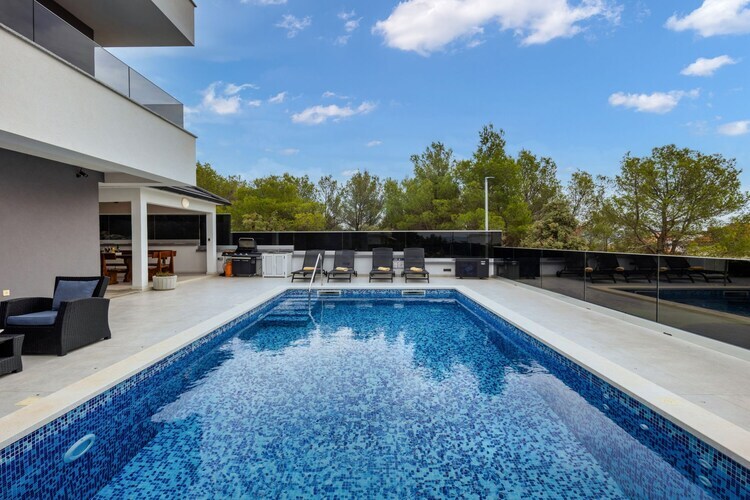 Villa Shaula is a modern holiday retreat located in the tranquil village of Bilice, just a few kilometers from Šibenik in Croatia's Šibenik-Knin County. Built in 2020, this Mediterranean-style villa offers a peaceful setting ideal for families or small groups seeking relaxation and privacy.