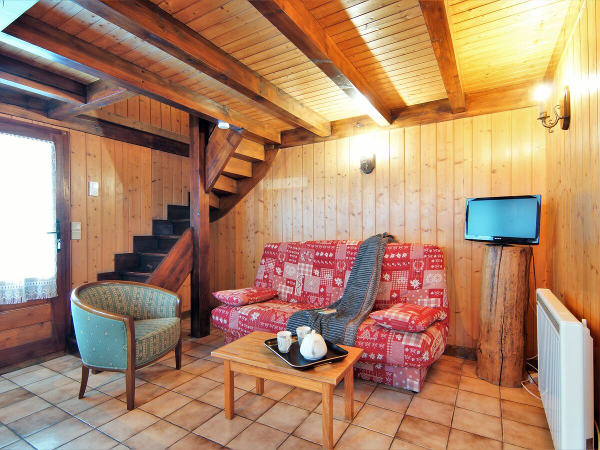 Construit sur 2 niveaux, ce chalet est aménagé de manière simple et comprend un séjour/salle à manger avec un divan-lit double et TV ; un coin-cuisine avec 4 plaques de cuisson, four et lave-vaisselle ; 1 chambre mansardée avec 1 grand lit ; 1 chambre mansardée avec 2 lits. Ce chalet comprend aussi 1 salle de bains et des toilettes séparées.