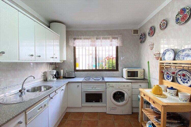 Rez-de-chaussée: (Salle de séjour(TV, table, coin salon), cuisine ouverte(foyer(électrique), bouilloire, grille-pain, cafetière/percolateur, four, micro ondes, combinaison réfrigérateur/congélateur, ), salle de bains(douche), Accès Internet) Au 1er étage: (chambre(lit double), chambre(lit simple, lit simple), salle de bains(douche, sèche-cheveux)) lave-linge , balcon, climatisation, terrasse, piscine(partagé avec d'autres clients), fer à repasser
