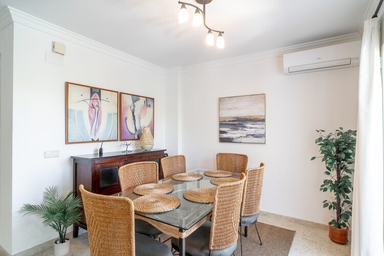 cuisine(bouilloire, grille-pain, cafetière/percolateur, four, micro ondes, lave-vaisselle , réfrigérateur, congélateur, ), salle à manger-salon(TV(smart TV), table, coin salon), chambre(lit simple, lit simple), chambre(lit double), chambre(lit double), salle de bains(baignoire), salle de bains(baignoire), salle de bains(WC), Accès Internet, lave-linge , climatisation, terrasse(30 m2), transats, barbecue, parking, piscine(privé), fer à repasser, sèche-cheveux