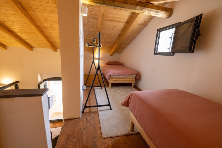 Rez-de-chaussée: (Entrée, cuisine ouverte(foyer, bouilloire, cafetière/percolateur, combinaison réfrigérateur/congélateur), salle à manger-salon(table(4 personnes), coin salon), chambre(lit double(200 x 160 cm)), salle de bains(douche(douche à l'italienne), lavabo, WC, bidet)) Au 1er étage: (alcôve(lit simple, lit simple)) terrasse, jardin(privé, clôturé), mobilier de jardin, parking, piscine(privé, extérieur, clôturé)