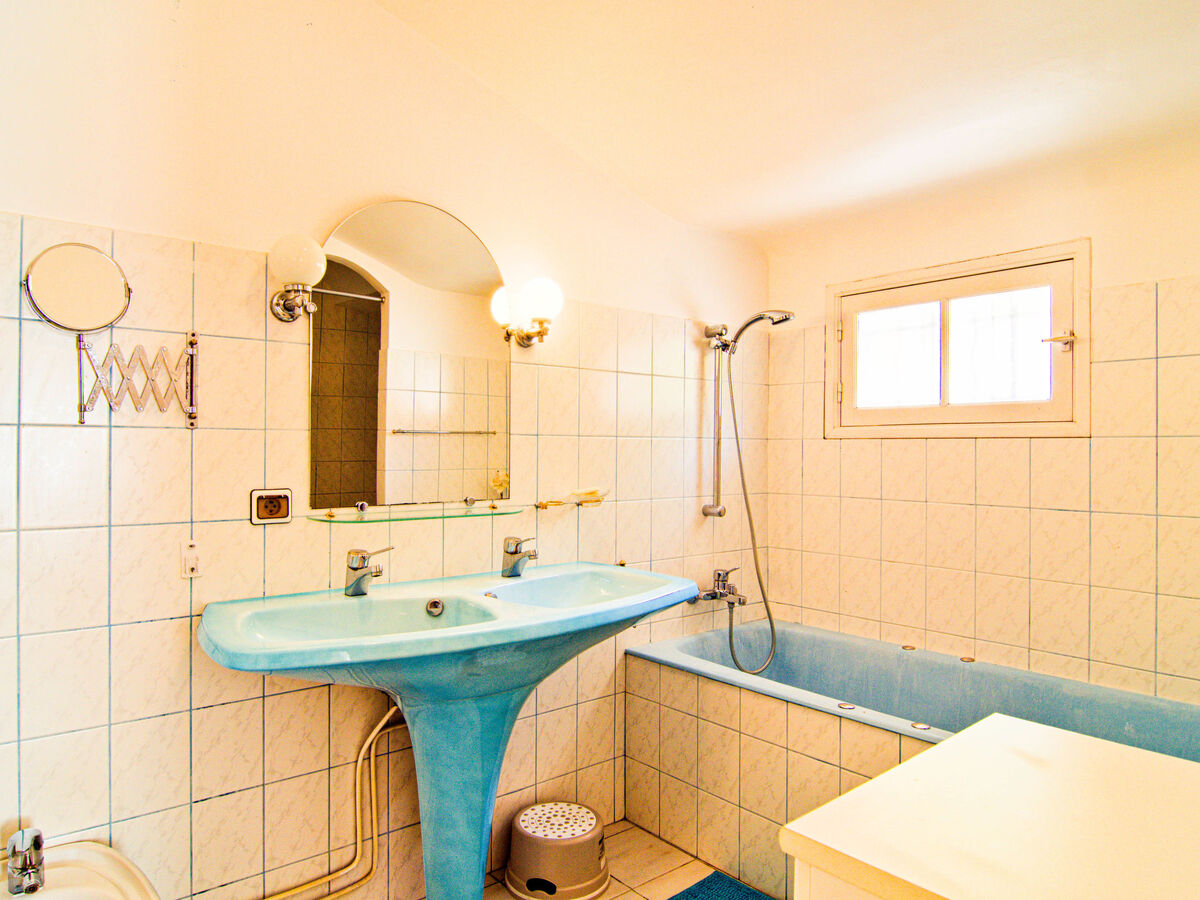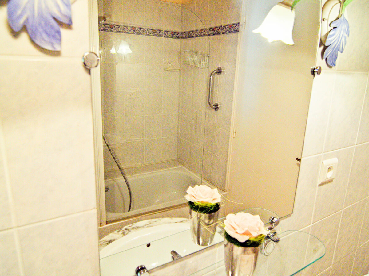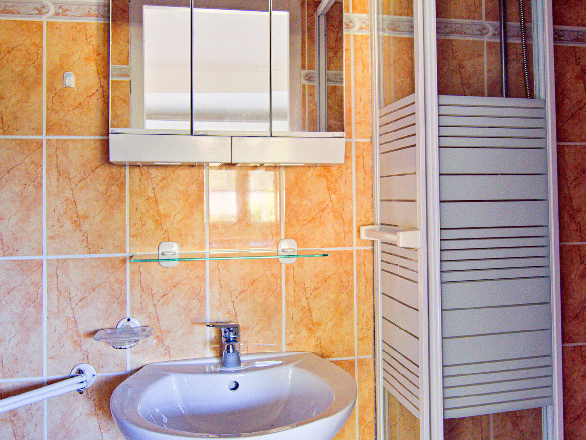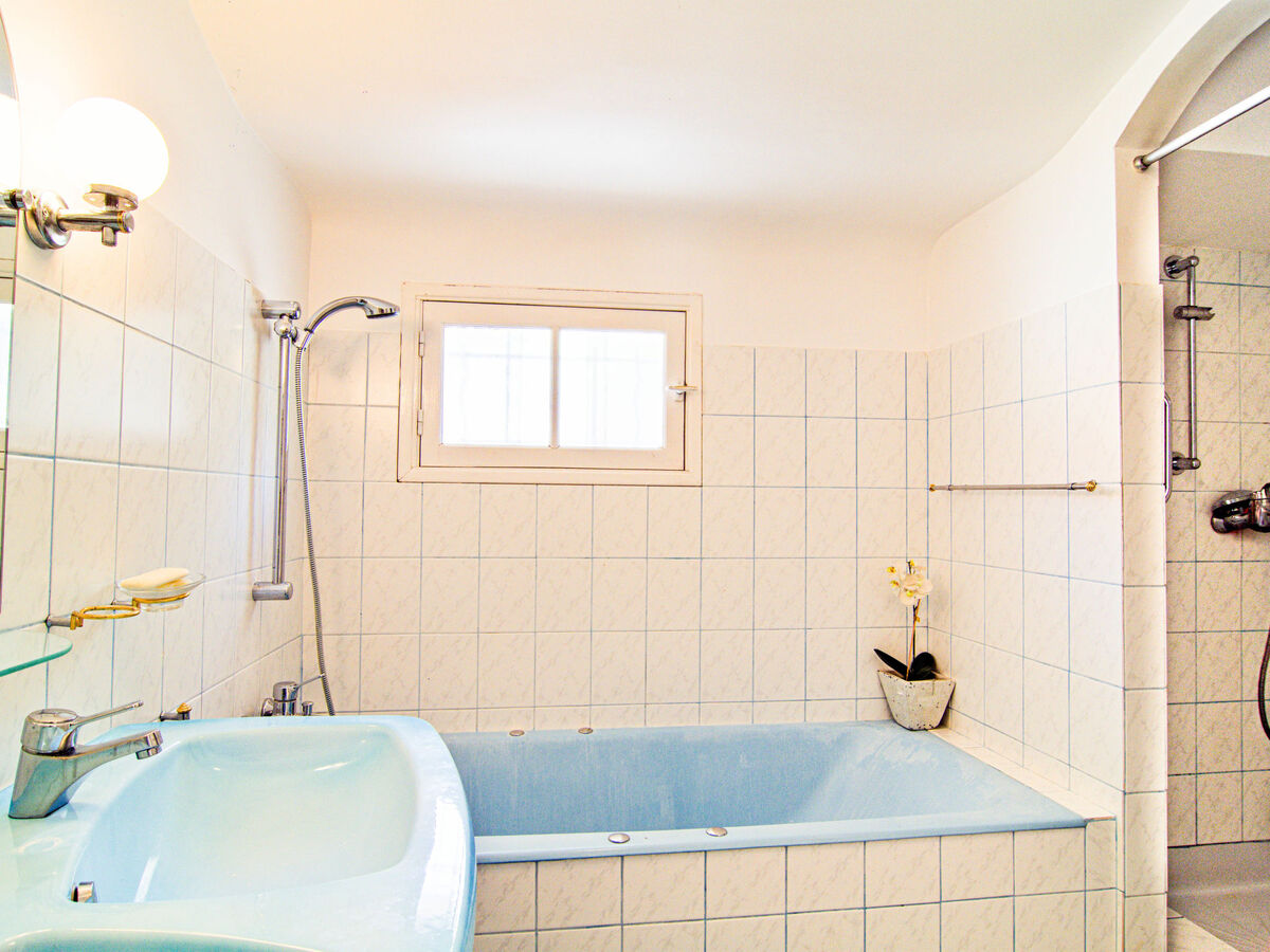 À l'étage supérieur: petit Studio avec 1 divan-lit double (160 cm, longueur 200 cm), douche/WC.