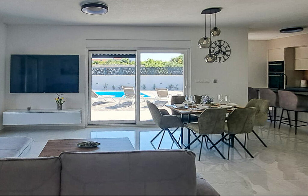 Cette maison de vacances aménagée avec style et qualité vous accueille dans un endroit calme, non loin de la plage populaire de Starine, et vous offre un chez-soi douillet. Créez ici des délices culinaires, réjouissez-vous des repas harmonieux autour de la table à manger accueillante et détendez-vous sur le canapé après une journée bien remplie : regardez votre série préférée en streaming ou plongez-vous dans votre lecture de vacances.