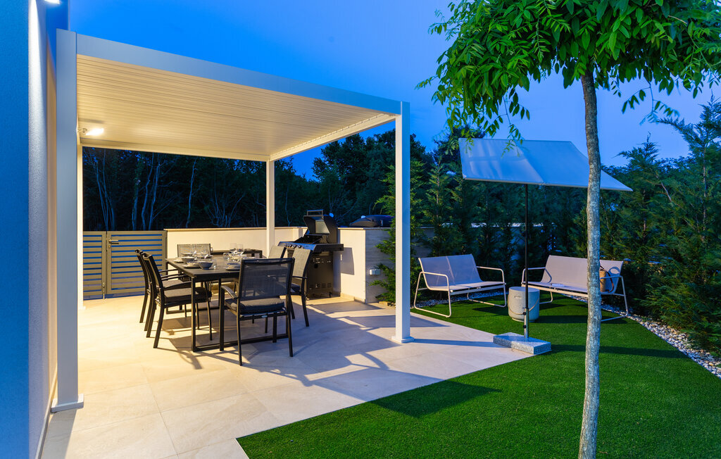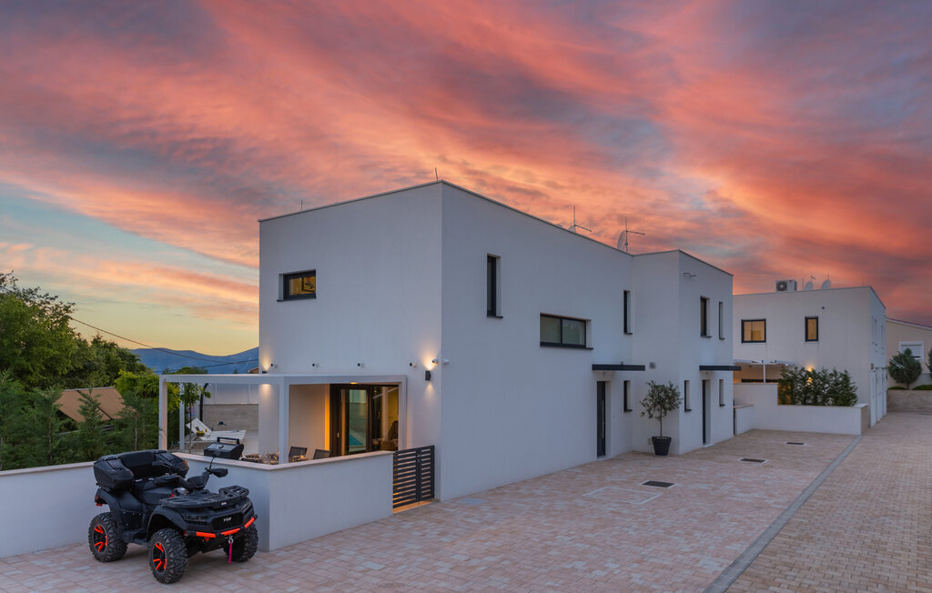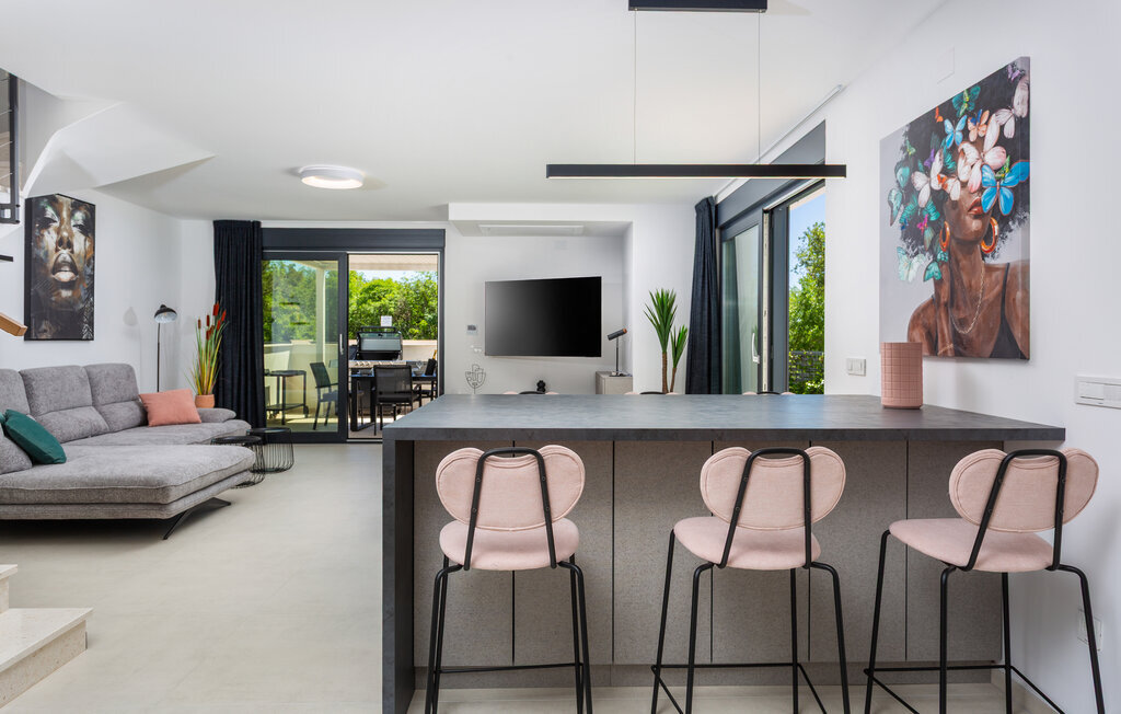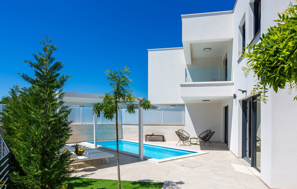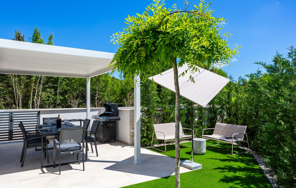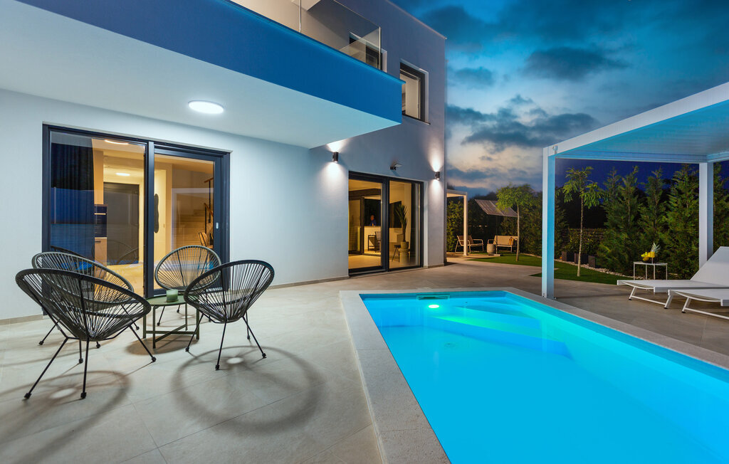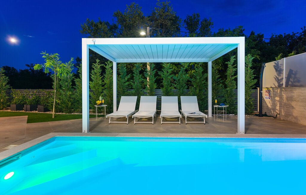 Le matin, montez pieds nus sur votre terrasse ensoleillée et faites tranquillement des longueurs dans la magnifique piscine. De longues heures sous le ciel bleu, des heures de lecture à l'ombre et des repas conviviaux sur la terrasse accueillante vous attendent. Allumez le barbecue et discutez autour d'un verre de vin et à la lueur des bougies jusque tard dans la chaude nuit d'été.