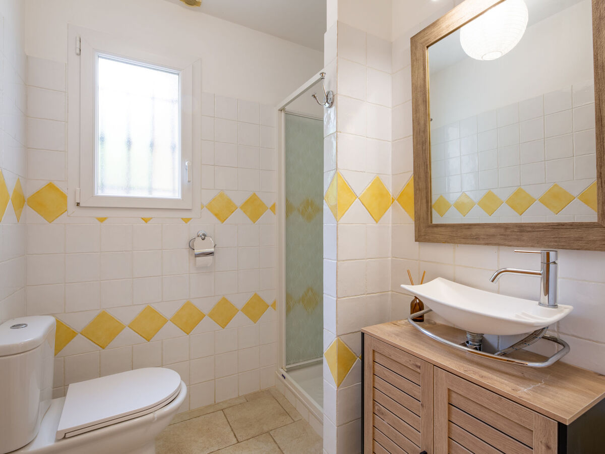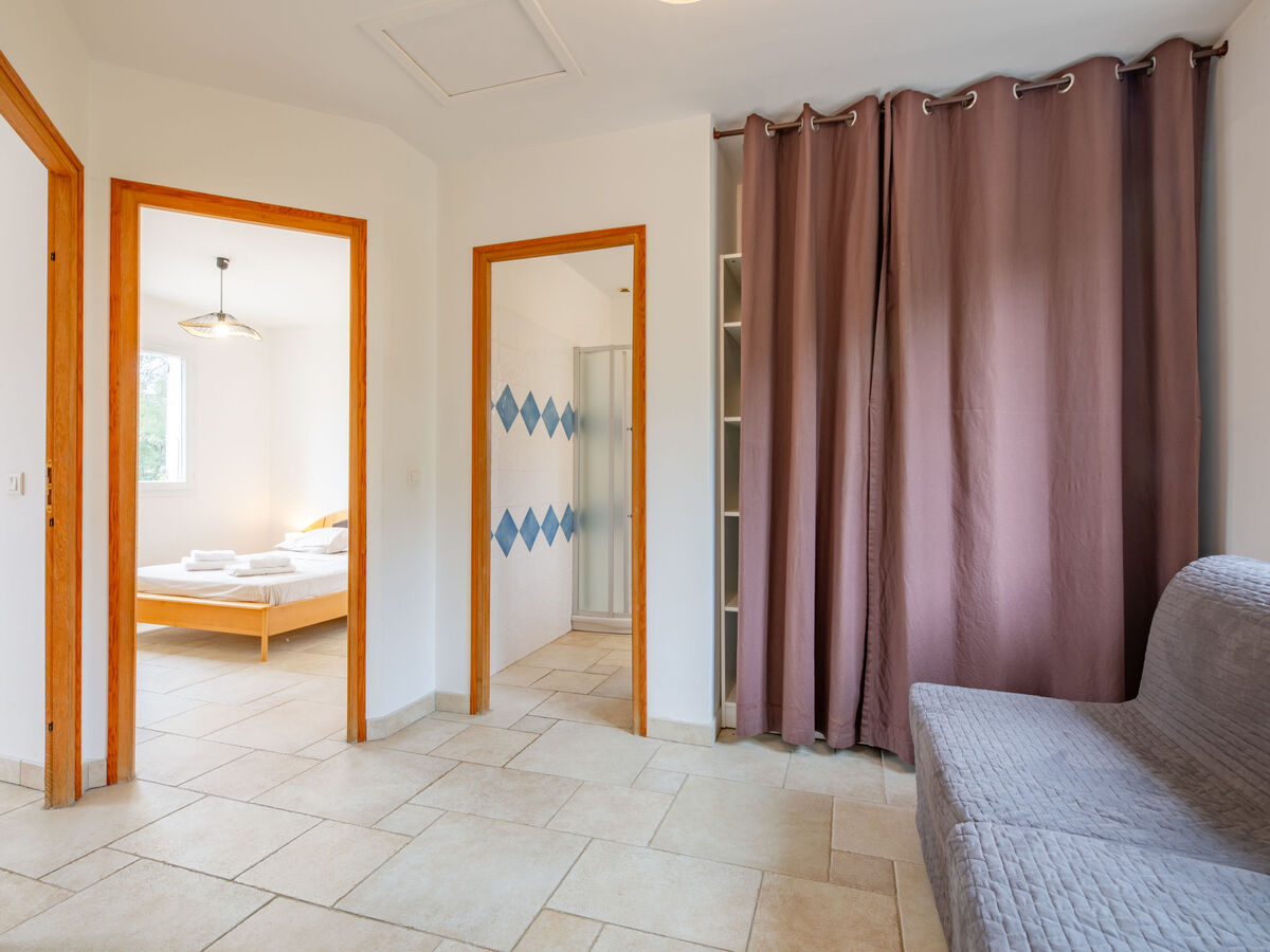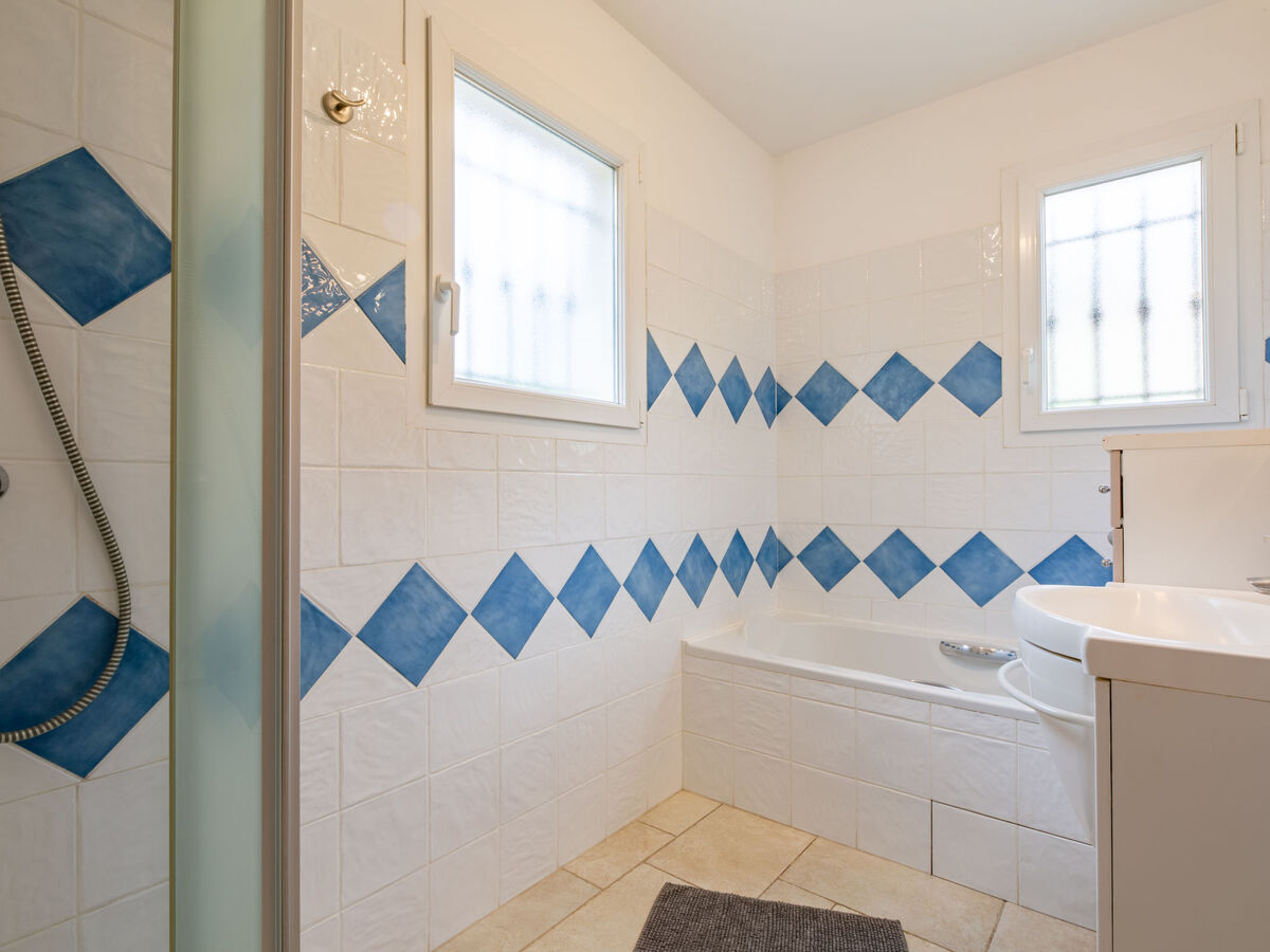 1 chambre avec 1 grand-lit (160 cm, longueur 200 cm), bain/douche/WC.