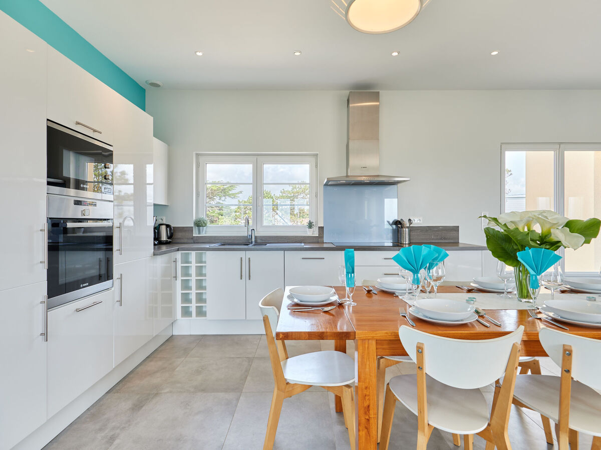 Cuisine ouverte (four, lave-vaisselle, 1 plaques à induction, 4 feux, grille-pain, bouilloire électrique, micro-ondes, cafetière électrique, Capsules pour machine à café (Dolce gusto)).