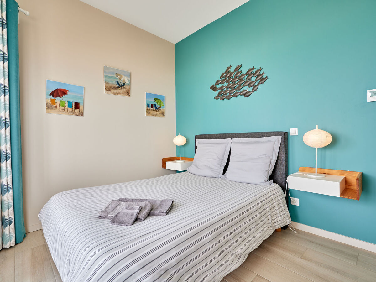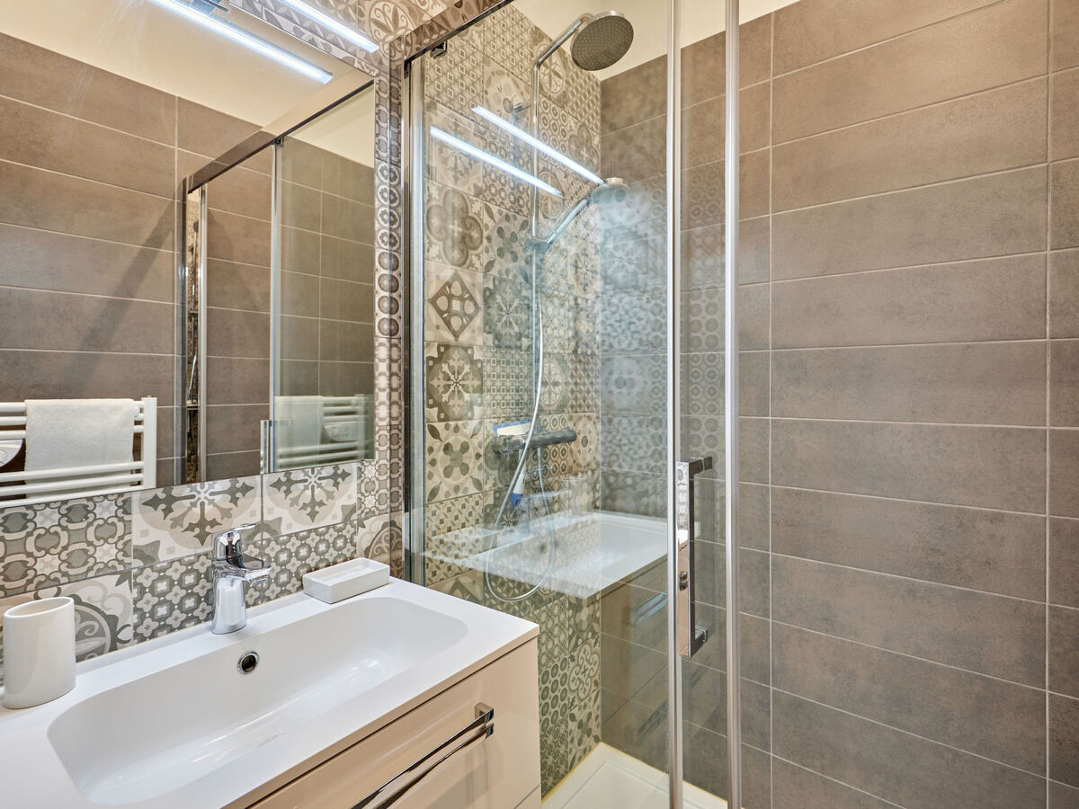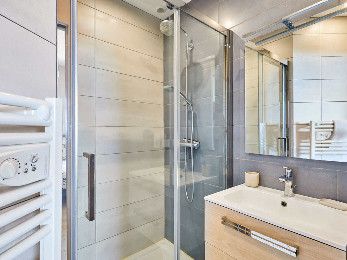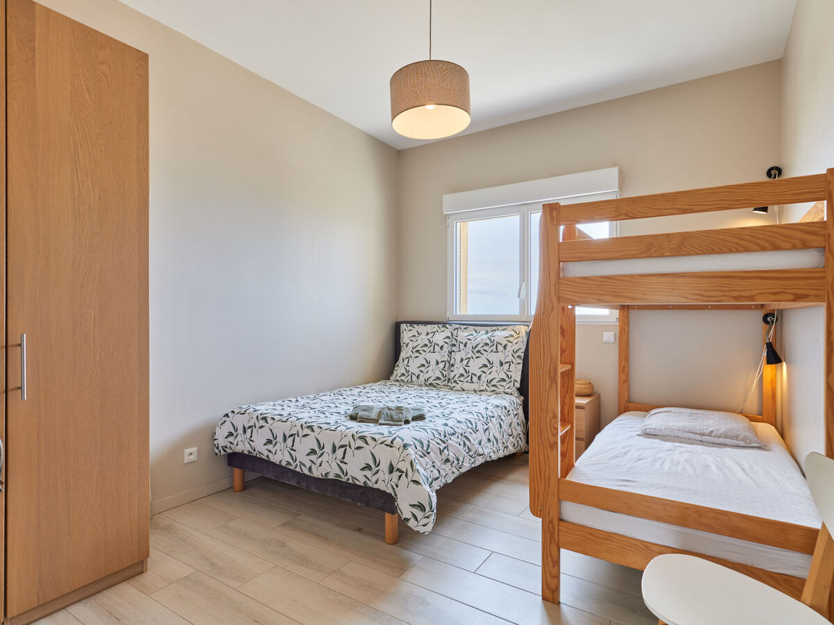 1 chambre avec 1 x 2 lits superposés (90 cm, longueur 190 cm), 1 lit double (140 cm, longueur 190 cm), douche avec WC séparés.