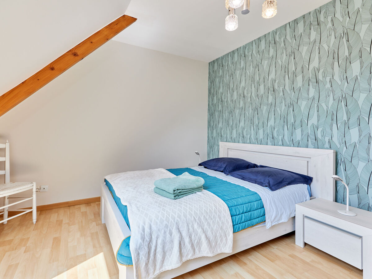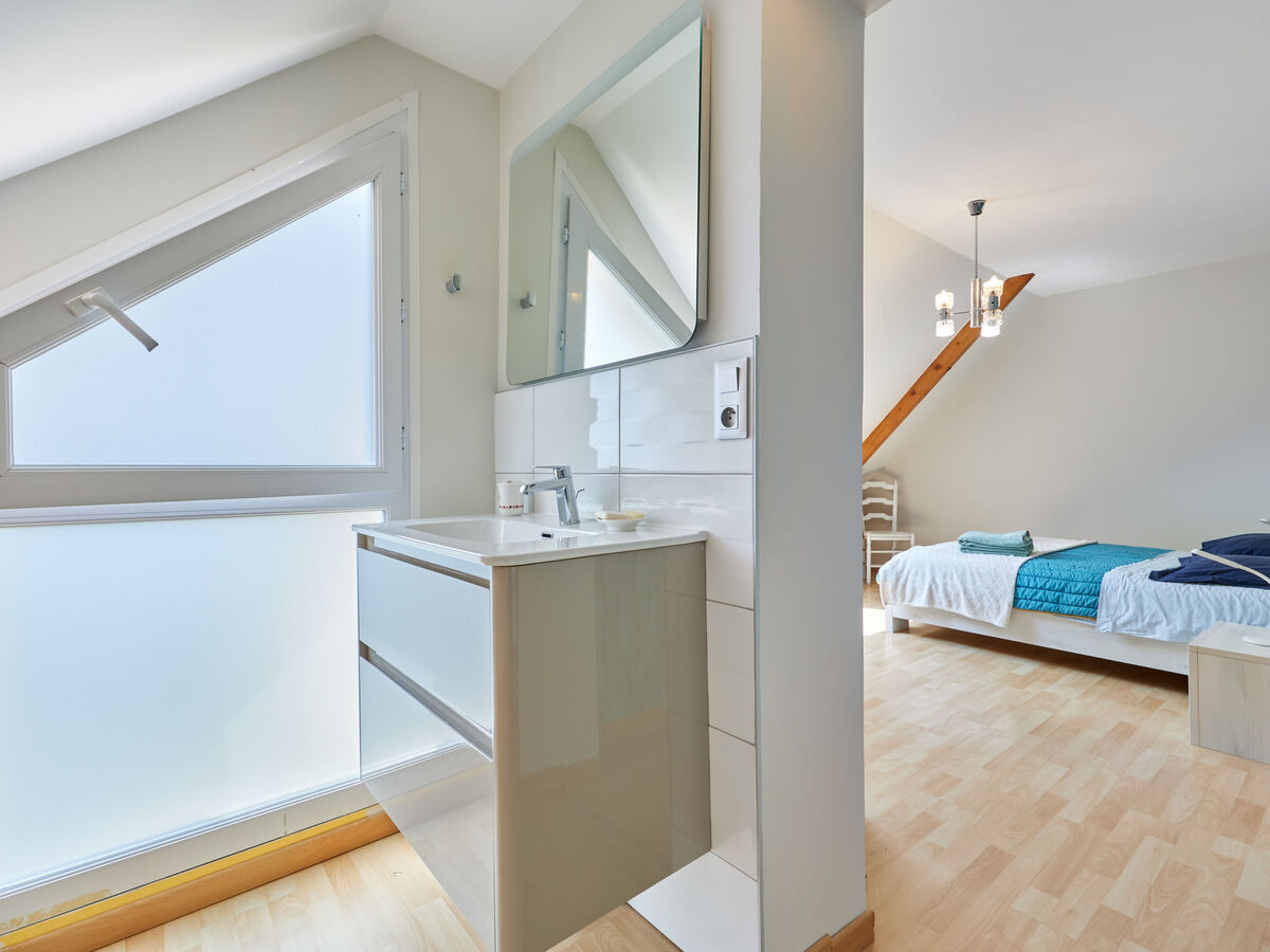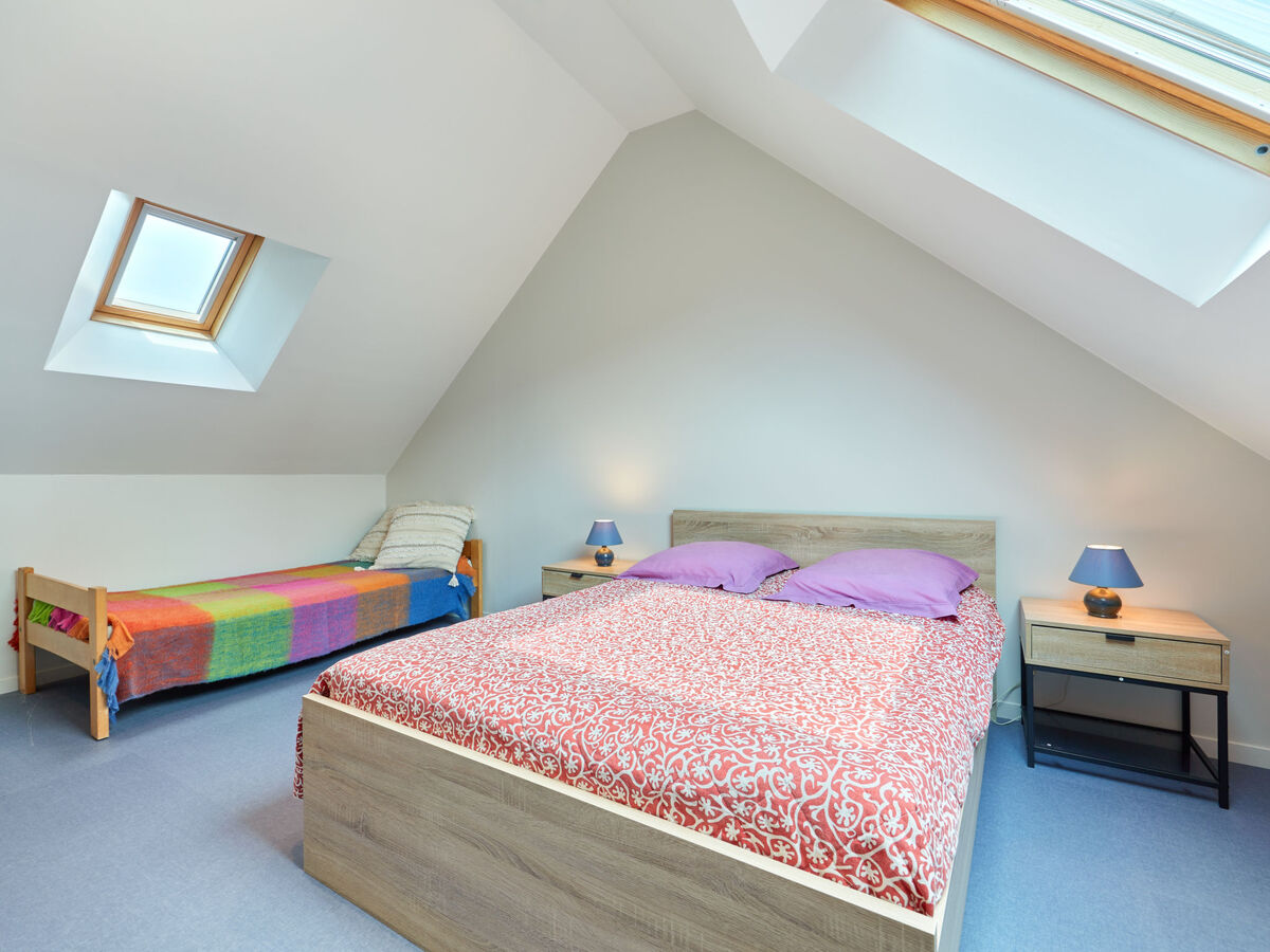 1 chambre avec 1 grand-lit (140 cm, longueur 190 cm), douche.