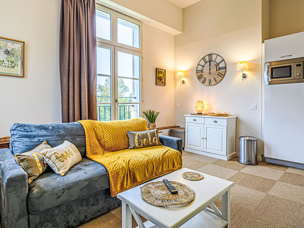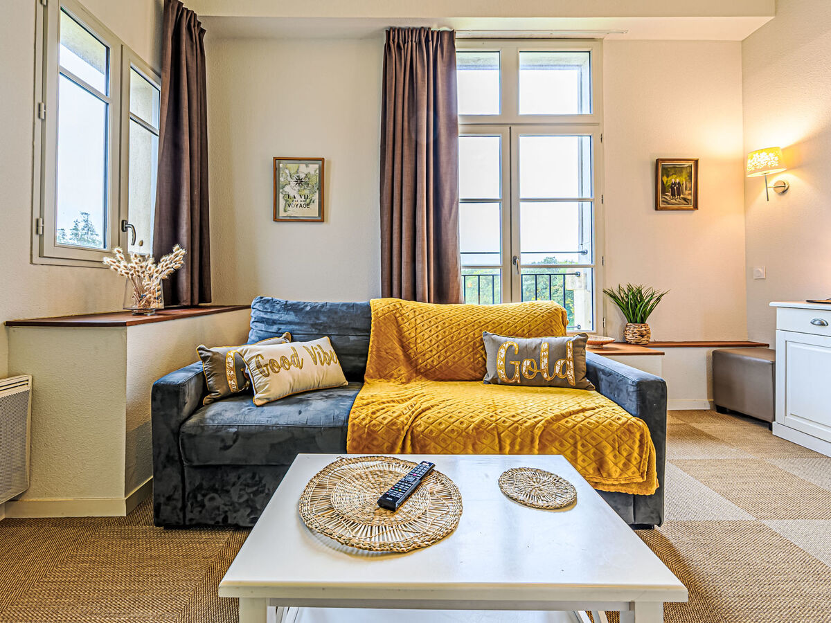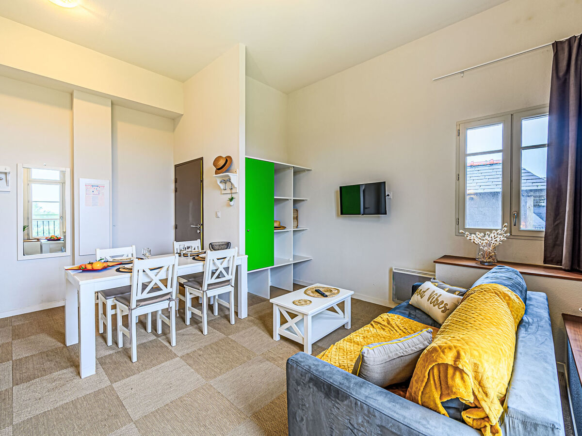 Aménagement fonctionnel et agréable: séjour/salle à manger avec 1 divan-lit double et TV (écran plat).