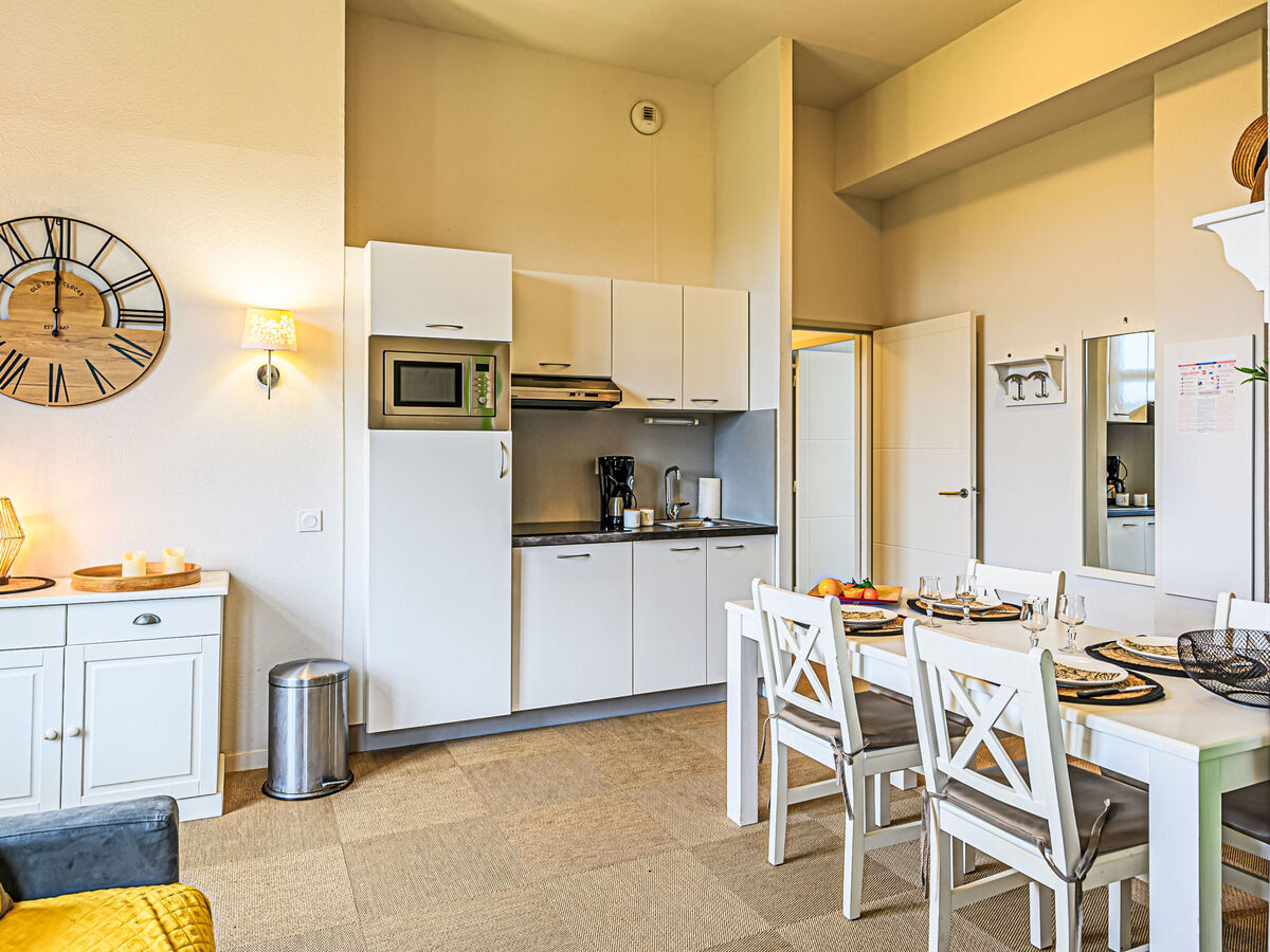 Coin cuisine (lave-vaisselle, 4 plaques vitrocéramiques, grille-pain, bouilloire électrique, micro-ondes, cafetière électrique).