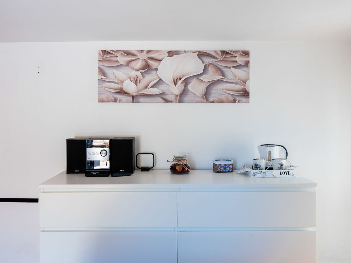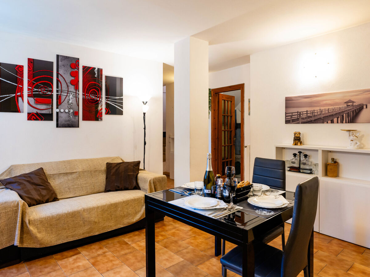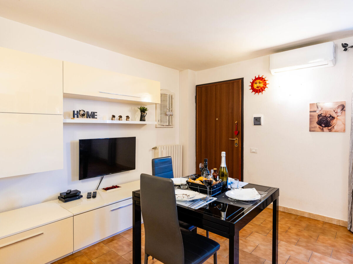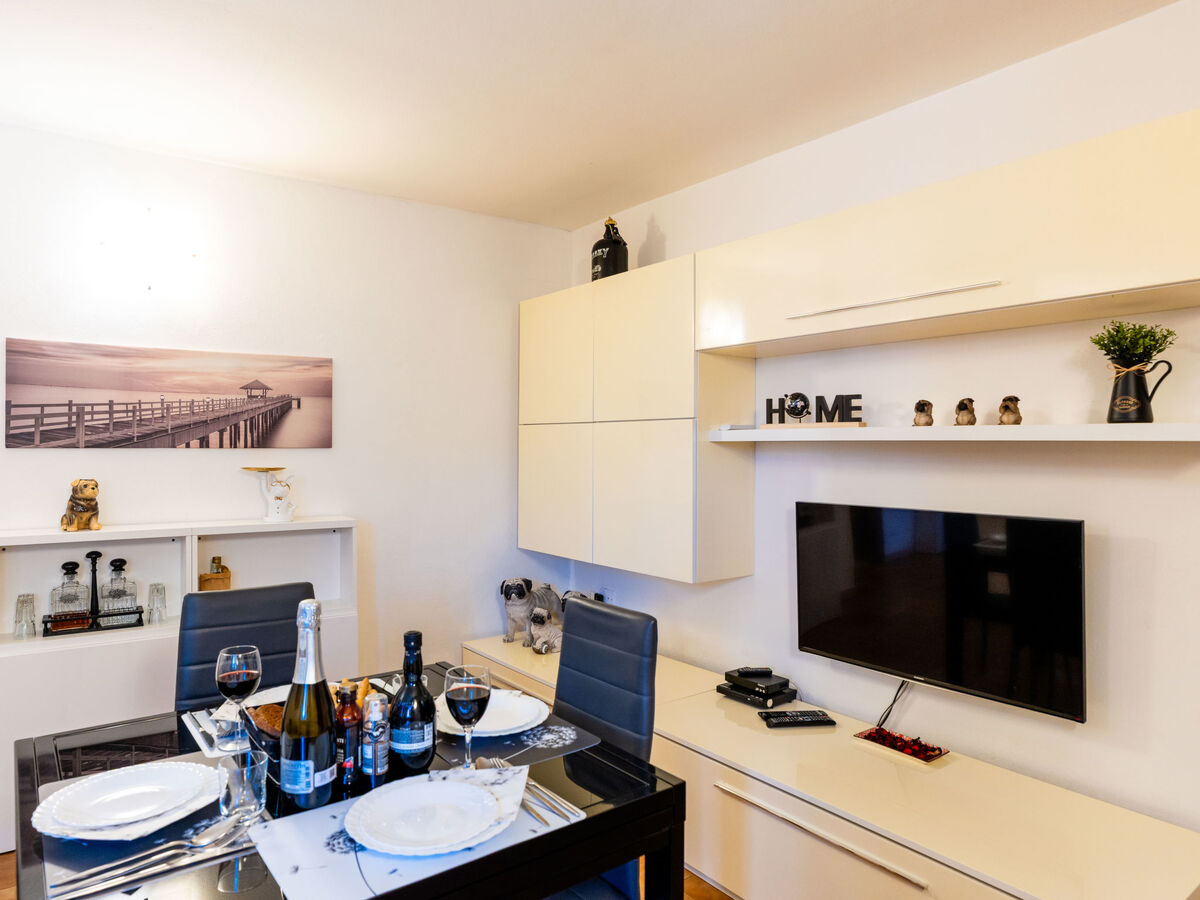 Aménagement confortable et plaisant: séjour/salle à manger avec 1 divan-lit (160 cm, longueur 200 cm), TV.