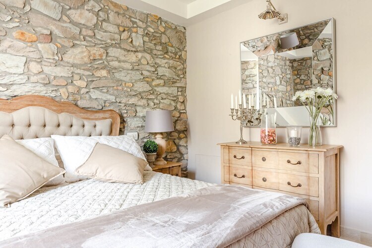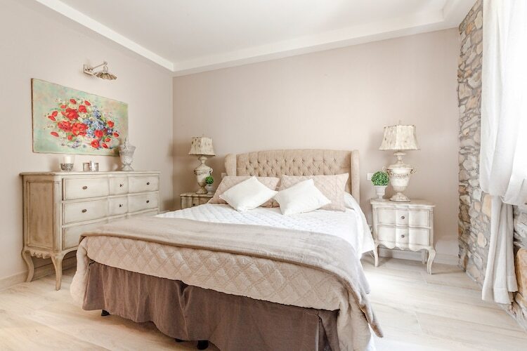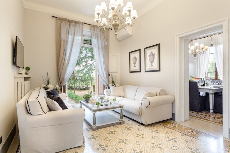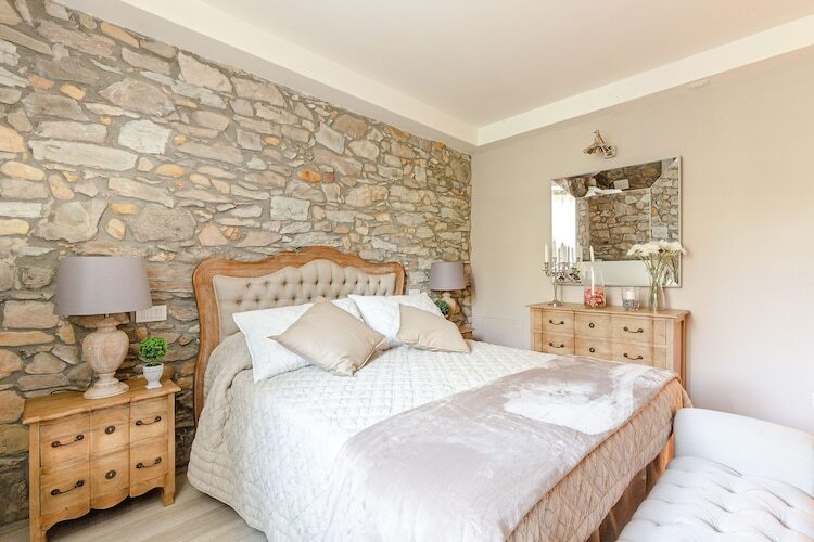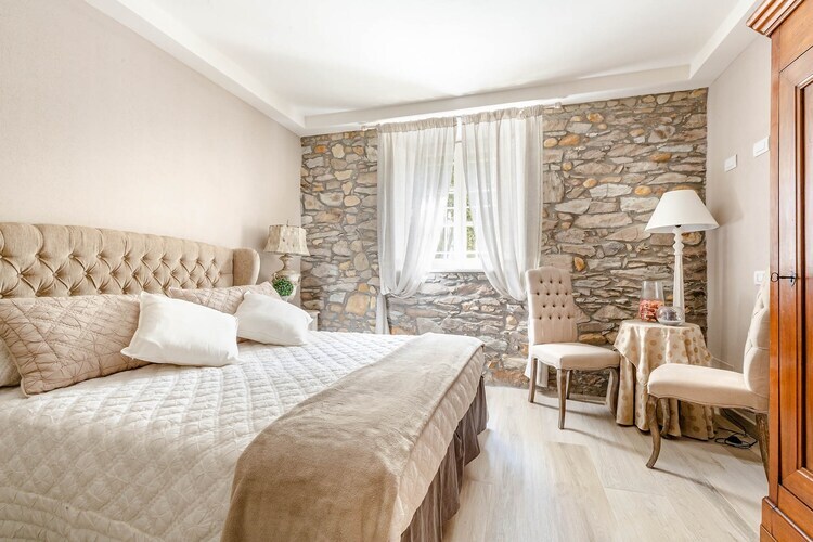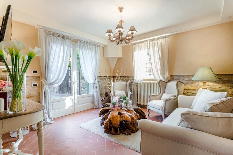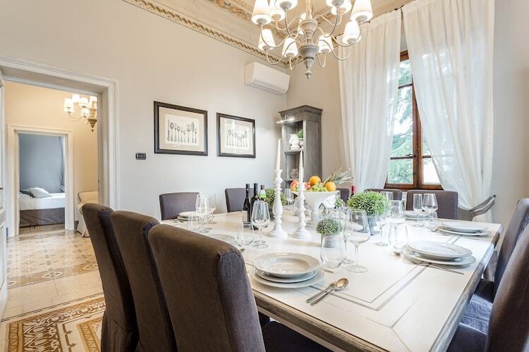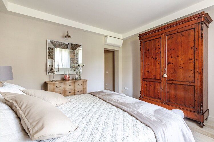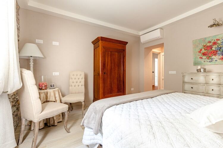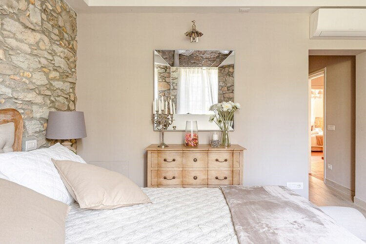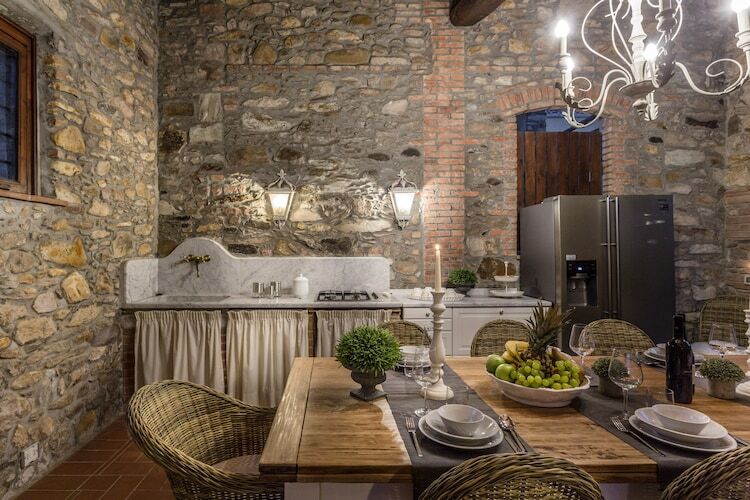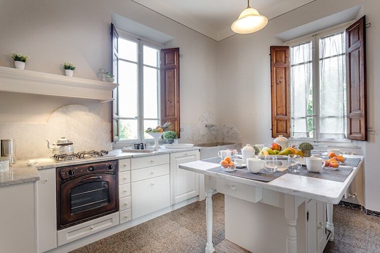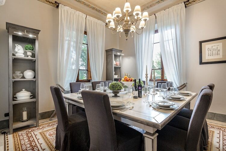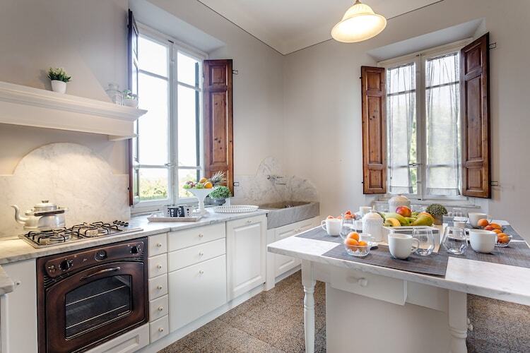 À l'intérieur, l'aménagement ouvert présente des tissus aux tons gris et des lustres en cristal encadrant de grandes fenêtres qui mettent en valeur les collines vallonnées. Imprégné du charme d'une retraite champêtre, le centre-ville animé de Lucques n'est qu'à 12 kilomètres. Détendez-vous au bord de la piscine d'eau salée, savourez le chant des oiseaux sur une chaise longue ou retirez-vous dans le salon extérieur ombragé. Profitez de fruits frais et d'une bouteille de vin offerts à la table à manger extérieure pour dix personnes, idéale pour les réunions, avec un barbecue pour les dîners au coucher du soleil. Les murs en pierre et le toit en tuiles évoquent l'essence d'une villa d'époque, tandis que l'intérieur éblouit par ses couleurs, ses textures et ses œuvres d'art raffinées.