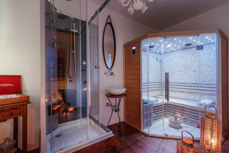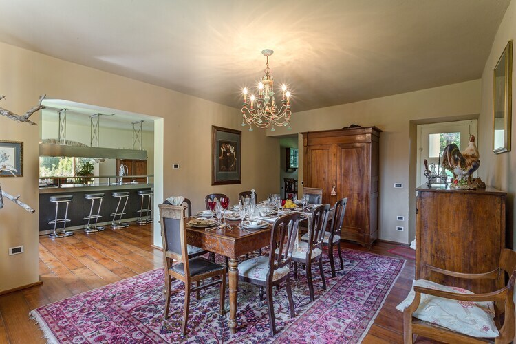 L'intérieur de la villa comprend six chambres spacieuses et quatre salles de bains luxueuses, ainsi que des équipements conçus pour un confort absolu. Profitez de journées de détente à la piscine intérieure chauffée, où de grandes baies vitrées offrent une vue imprenable sur la vallée. Le spa privé, équipé d'un sauna et d'une salle de sport, invite au bien-être et à la régénération, tandis qu'une grande piscine extérieure promet des journées ensoleillées sous le soleil de Toscane. Savourez des délices culinaires dans la cuisine entièrement équipée ou optez pour un dîner en plein air sous les arbres, avec barbecue et four à pizza au feu de bois, idéal pour les réunions de famille.
