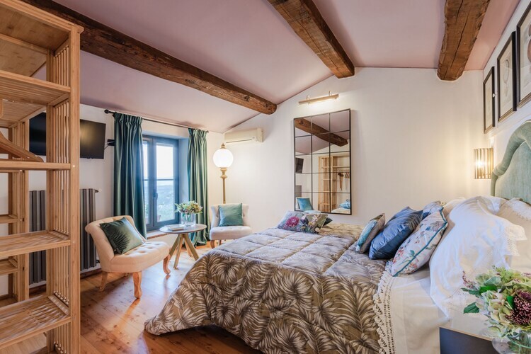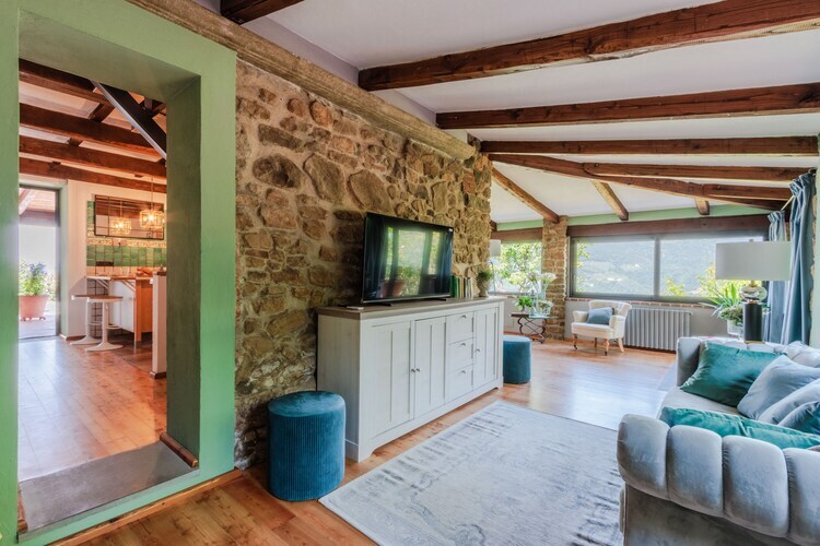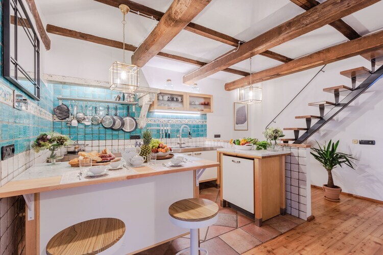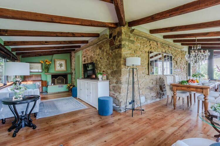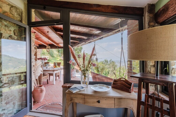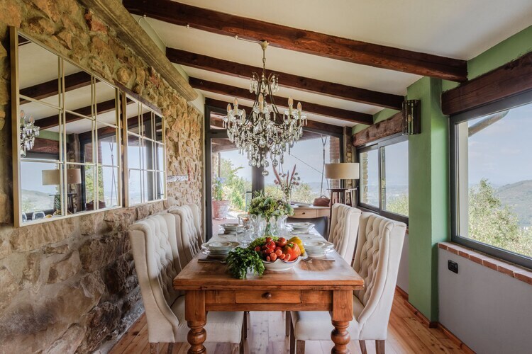 Pénétrez dans un intérieur magnifiquement conçu, où le style contemporain rencontre le charme rustique. De hauts plafonds avec poutres apparentes et des murs en pierre naturelle sont complétés par des touches de bois poli et un mobilier somptueux, créant une atmosphère lumineuse et aérée. De grandes baies vitrées inondent l'espace ouvert de lumière naturelle, illuminant la décoration moderne et les touches de couleur qui ornent la maison. Imaginez-vous commencer la journée avec une tasse de café fraîchement moulu sur la terrasse abritée, entourée d'oliviers et d'arbres fruitiers, ou savourer un délicieux repas en plein air accompagné d'une bouteille de vin local au coucher du soleil.