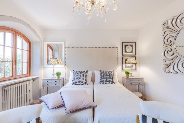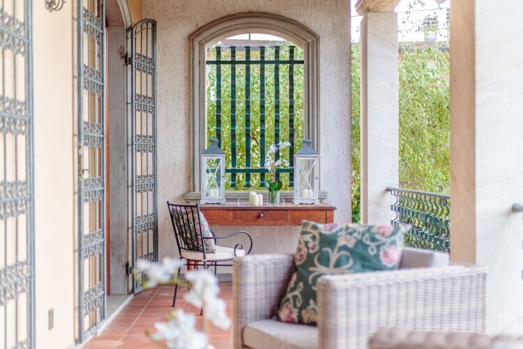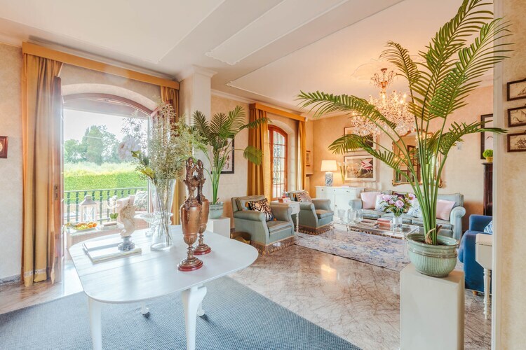 À l'intérieur, la villa allie élégance rustique et confort moderne. De grandes fenêtres, des détails architecturaux d'origine et un style classique des années 1900 confèrent aux pièces un charme fou, tandis que des équipements modernes garantissent un séjour confortable. La maison dispose d'une cuisine entièrement équipée donnant sur le jardin et la piscine, de spacieux espaces salon et salle à manger, de balcons extérieurs, de quatre chambres confortables et de trois salles de bains. La piscine hors-sol privée offre une pause rafraîchissante après une journée de visites.