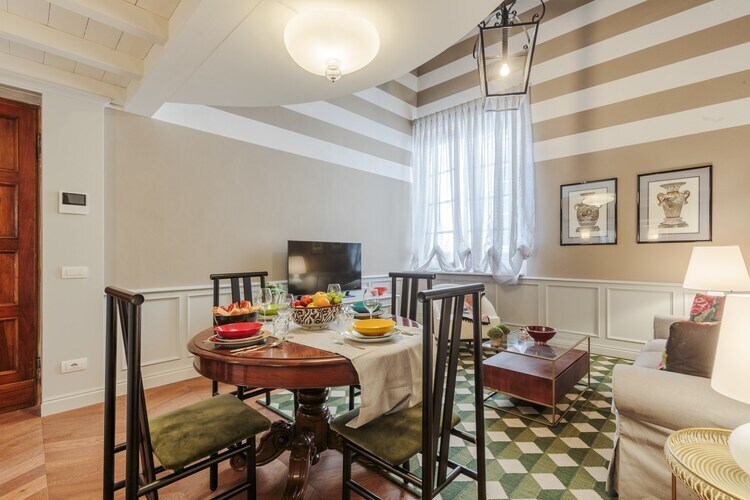 Installez-vous confortablement au cœur du centre historique de Lucques. Cet élégant appartement de deux chambres offre un havre de paix raffiné et chaleureux pouvant accueillir jusqu'à 4 personnes, idéal pour les couples, les amis ou les familles recherchant confort et caractère.